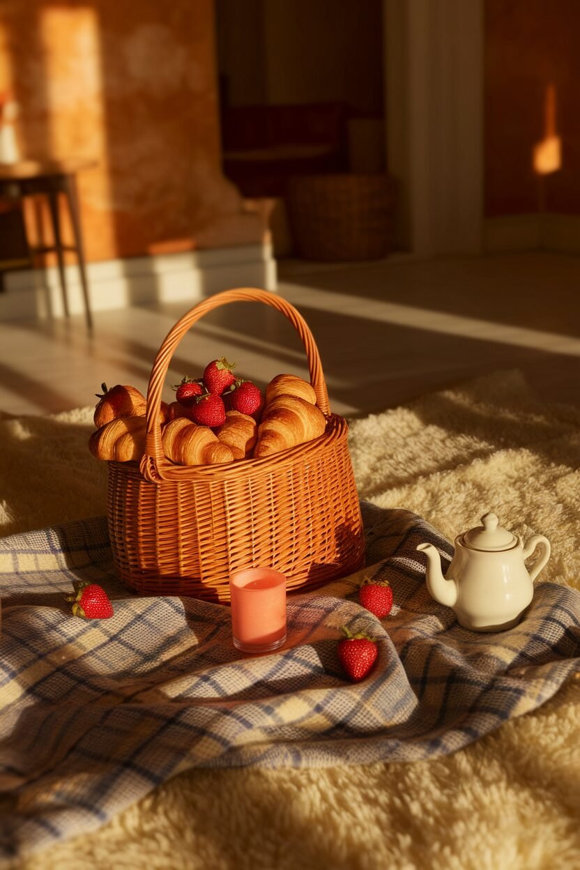Spread out a blanket in your living room and fill a basket with your favorite snacks. An indoor picnic is a charming way to bring the outdoors inside.