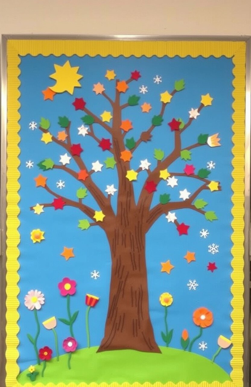 Imagine a tree that changes with the seasons right in your classroom. Start with a bare tree, and add leaves, flowers, or snowflakes as the seasons change. This helps students understand the passage of time and nature’s cycles.