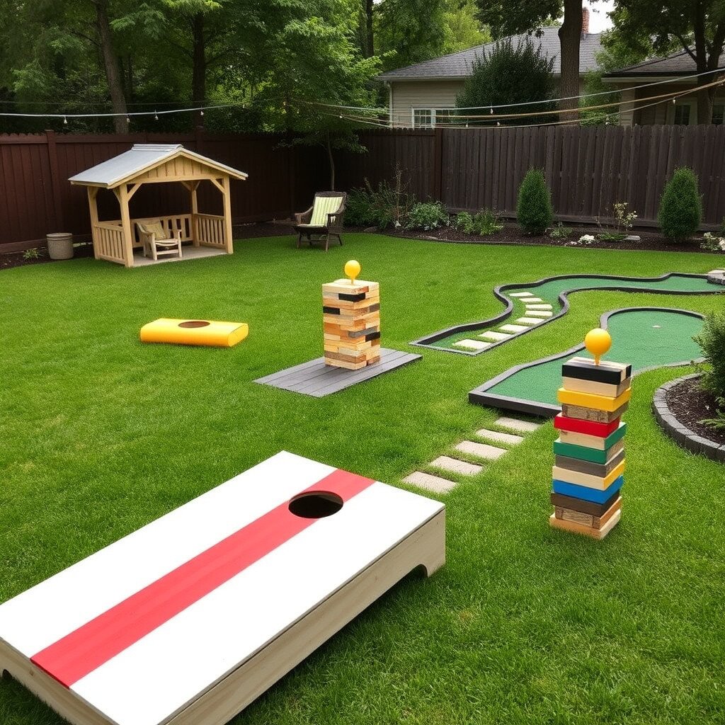 Turn your backyard into a playground with games like cornhole, giant Jenga, or a mini-golf course. It’s all about fun and friendly competition.