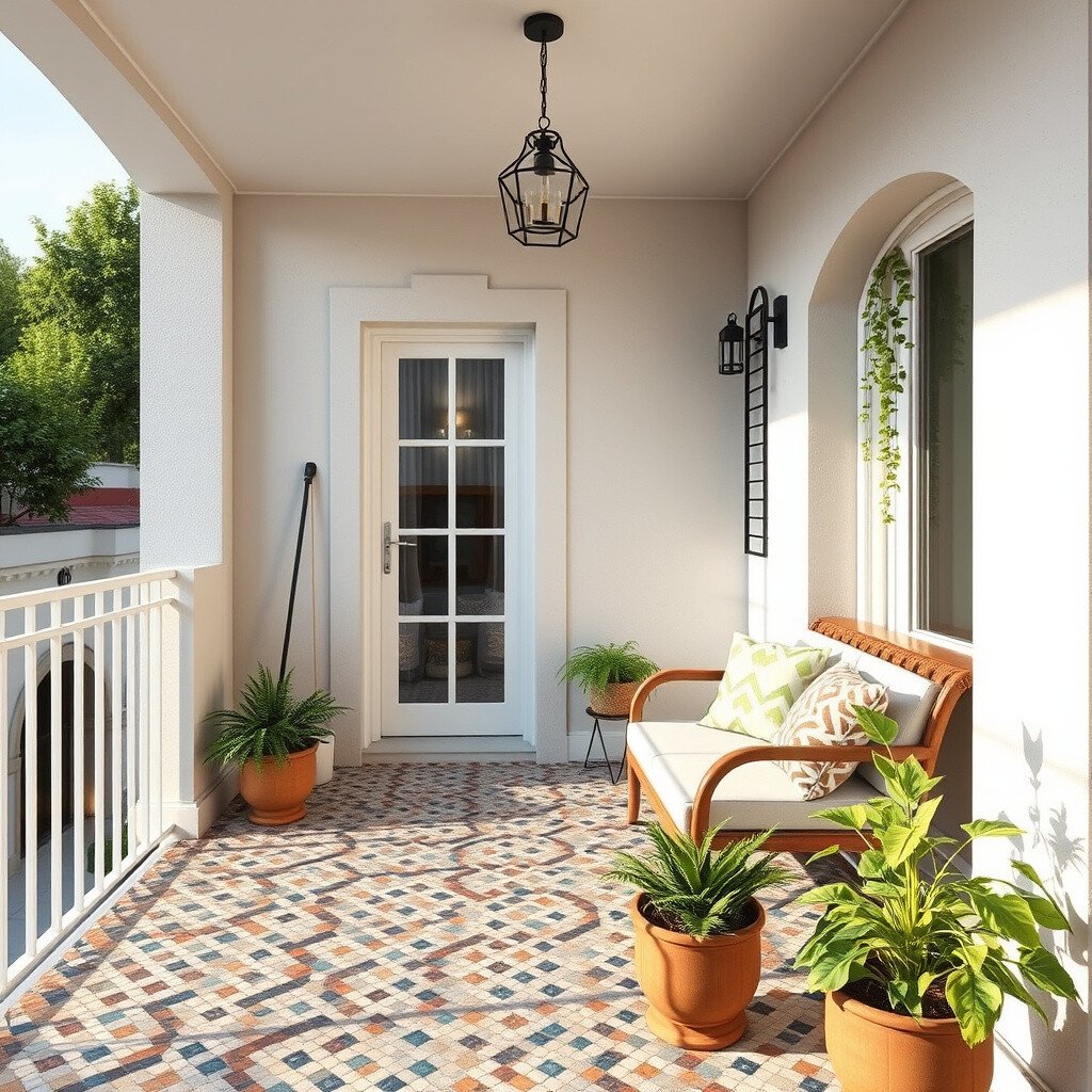 Mosaic tiles can turn your balcony into an art piece. These tiny tiles come in various colors, creating intricate patterns and designs.