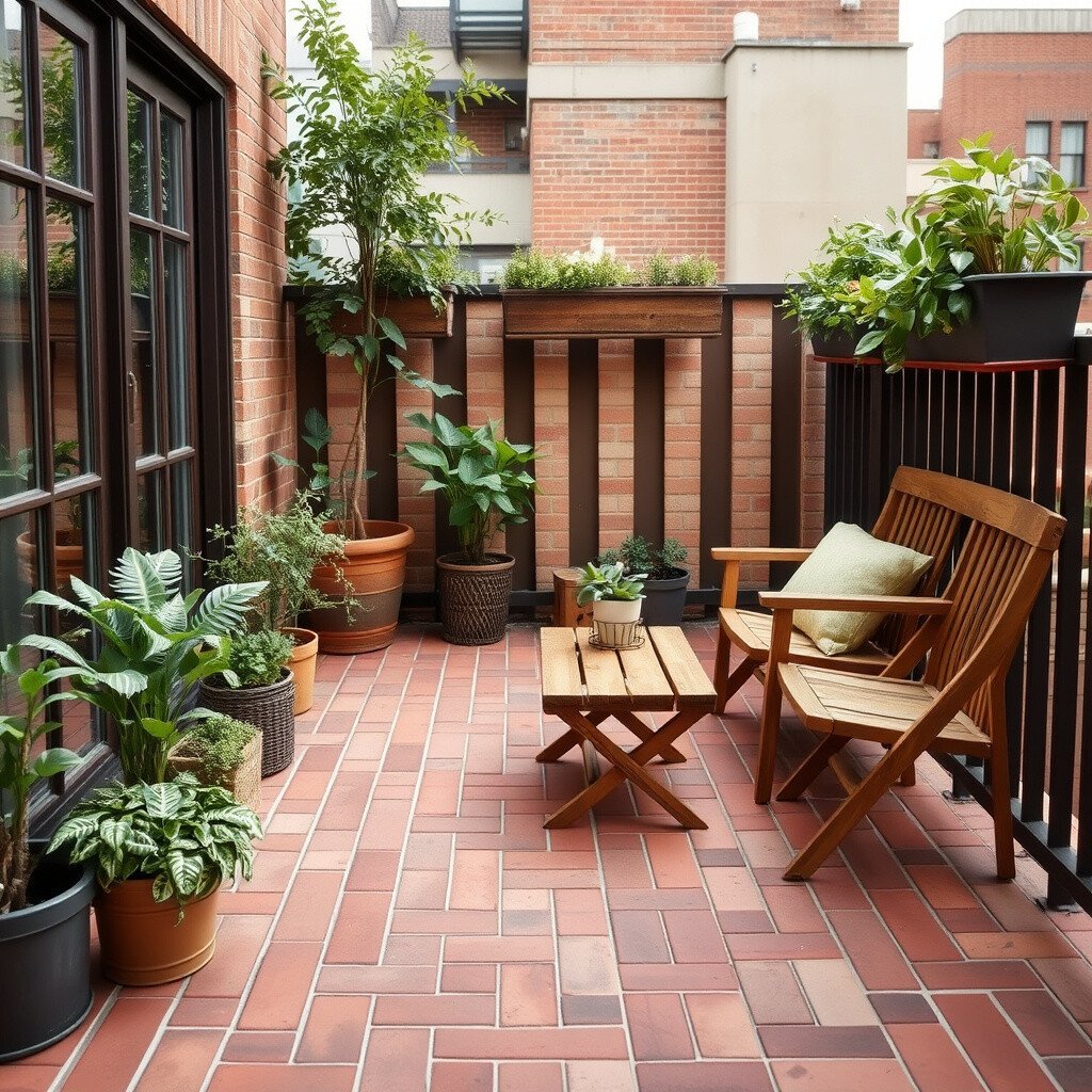 Brick flooring lends a rustic, charming feel to a balcony. It’s durable and can handle the elements well, aging beautifully over time.