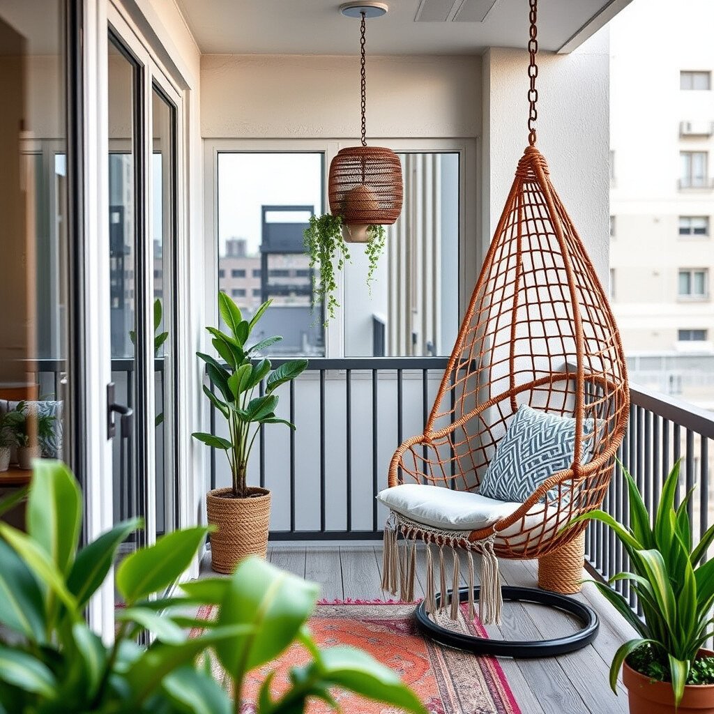 Hanging chairs are a playful and comfortable addition to any balcony. They provide a fun spot to relax and sway.