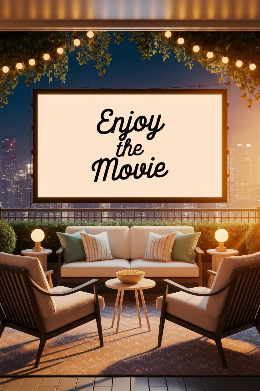 An outdoor movie screen can turn your balcony into a fun movie night spot. It’s perfect for cozy evenings with friends and family!