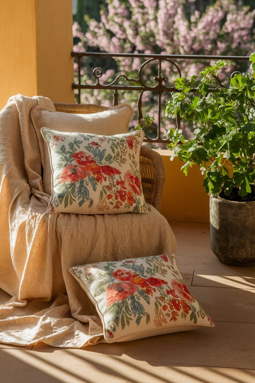 Throw blankets can add warmth and comfort to your balcony seating. They’re perfect for chilly evenings or just for a cozy look!