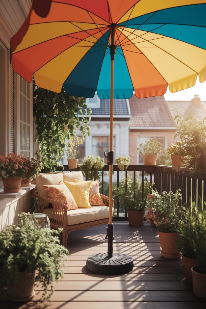 A colorful umbrella can provide shade while enhancing your balcony’s style. It’s perfect for sunny days when you need a break from the heat!