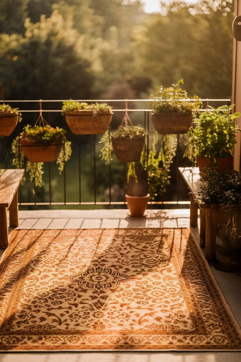 An outdoor rug can tie your balcony together beautifully. It brings warmth and comfort, making the space feel like a real room!