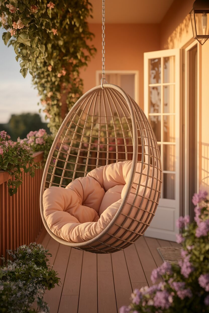 A hanging chair can be a unique and fun seating option for your balcony. It adds a whimsical touch and is perfect for lounging!
