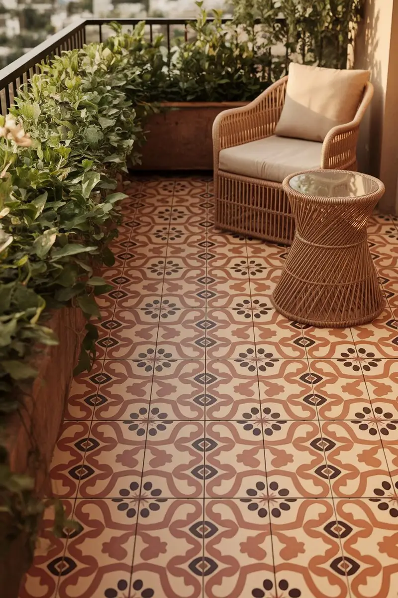 Patterned floor tiles can add a fun and stylish touch to your balcony. Think of colorful mosaics that can brighten up the space instantly!
