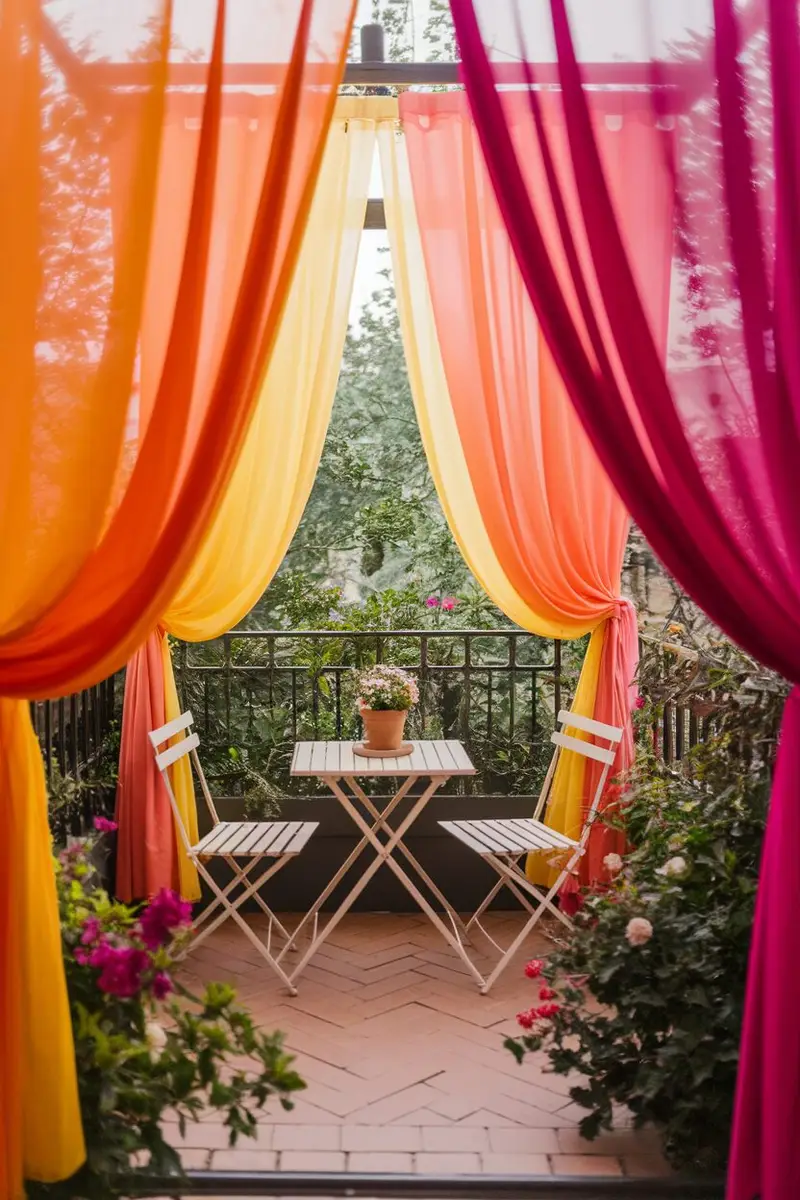 Outdoor curtains can add a touch of elegance and privacy to your balcony. Choose vibrant colors or patterns that reflect your style and brighten the space.