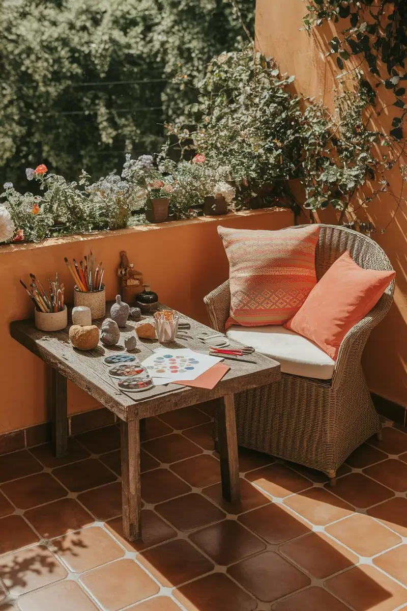 How fun would it be to have an arts and crafts station on your balcony? Lay out some cushions and bring your art supplies outside for a creative escape.