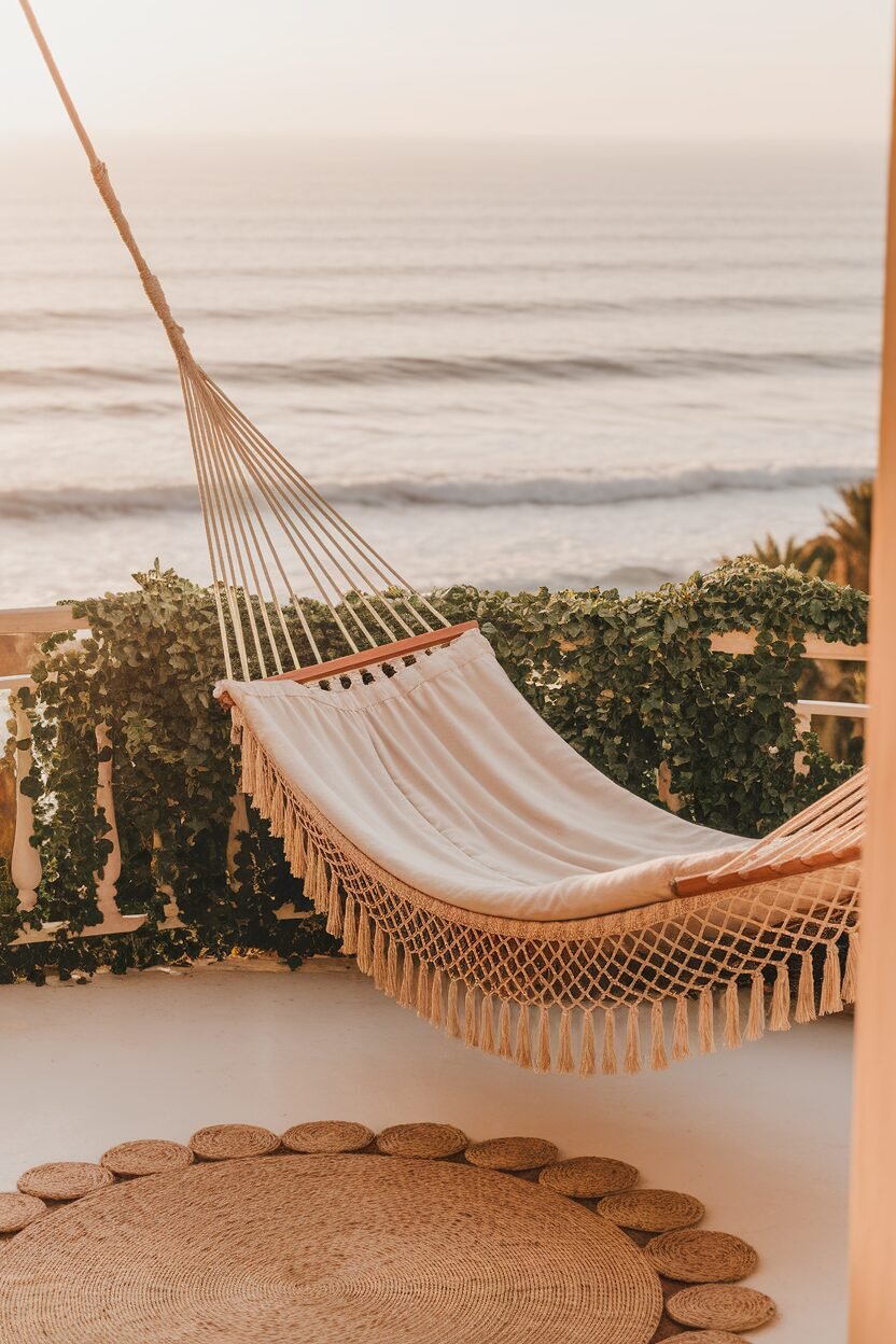Bring the sounds of the ocean to your balcony with an outdoor music setup. A portable speaker can set the mood with your favorite tunes while you lounge in your hammock.