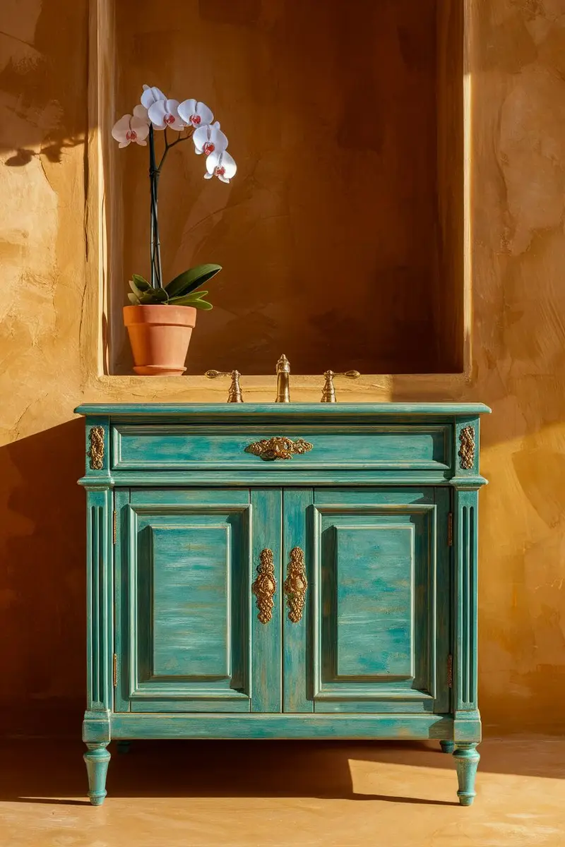 Why not add a splash of color to your bathroom with a vibrant cabinet? Bright hues like teal, yellow, or even coral can energize your space.