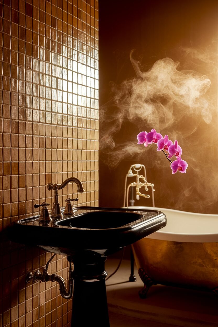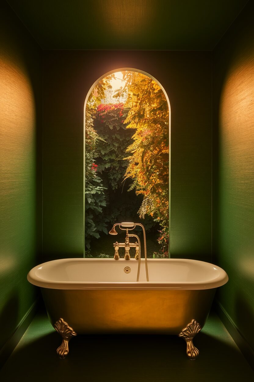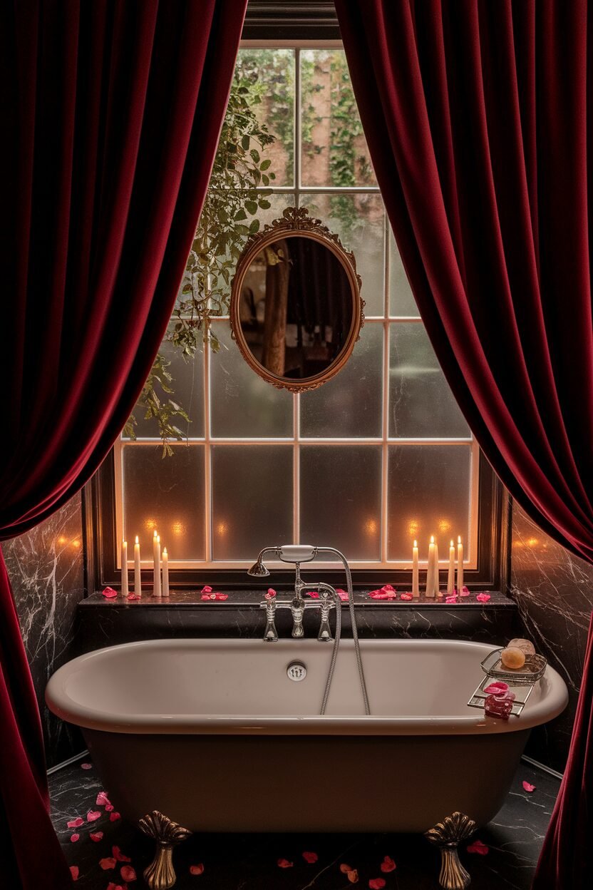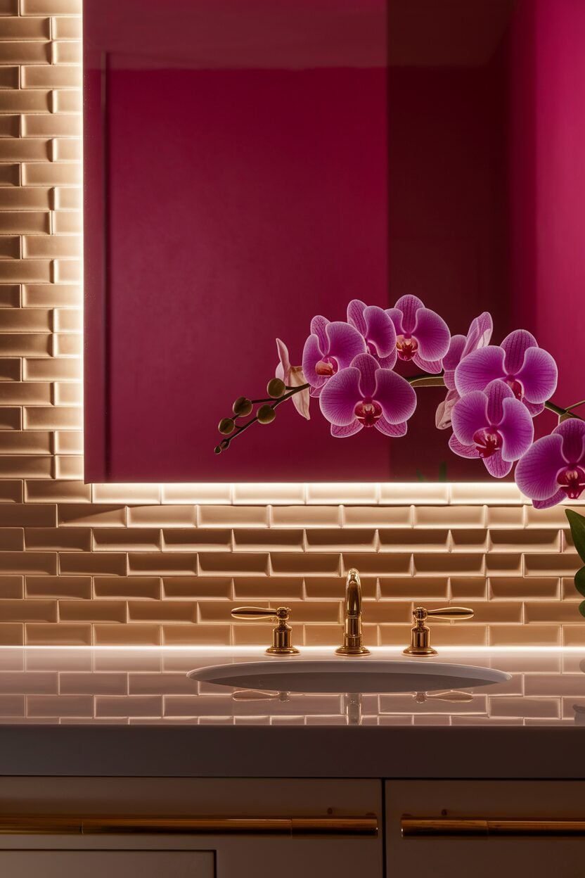Consider burgundy walls or a feature tile for impact. Add gold accents for a touch of luxury.