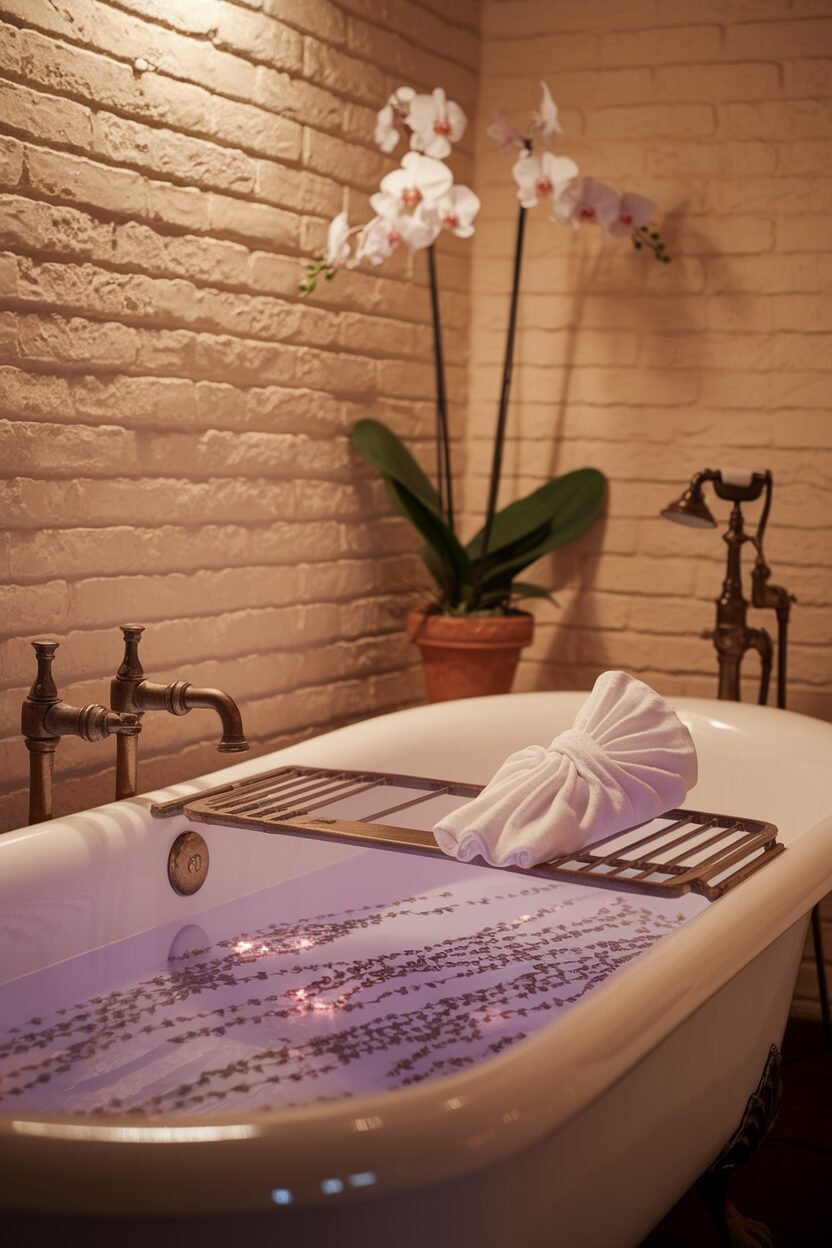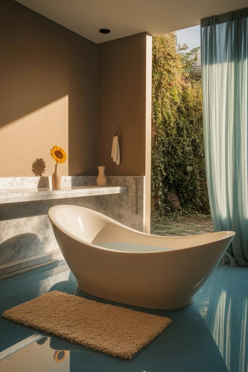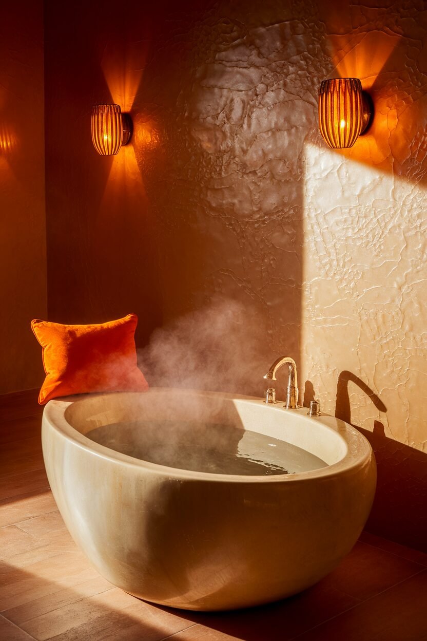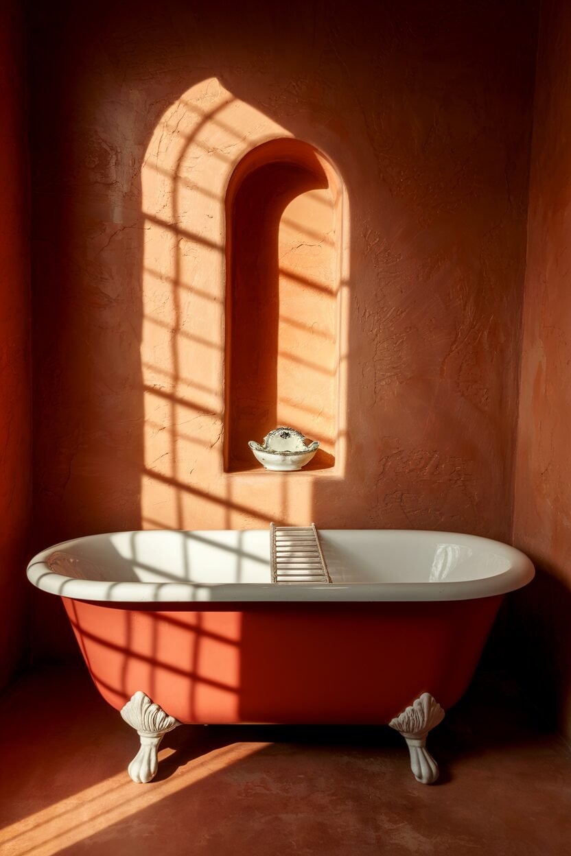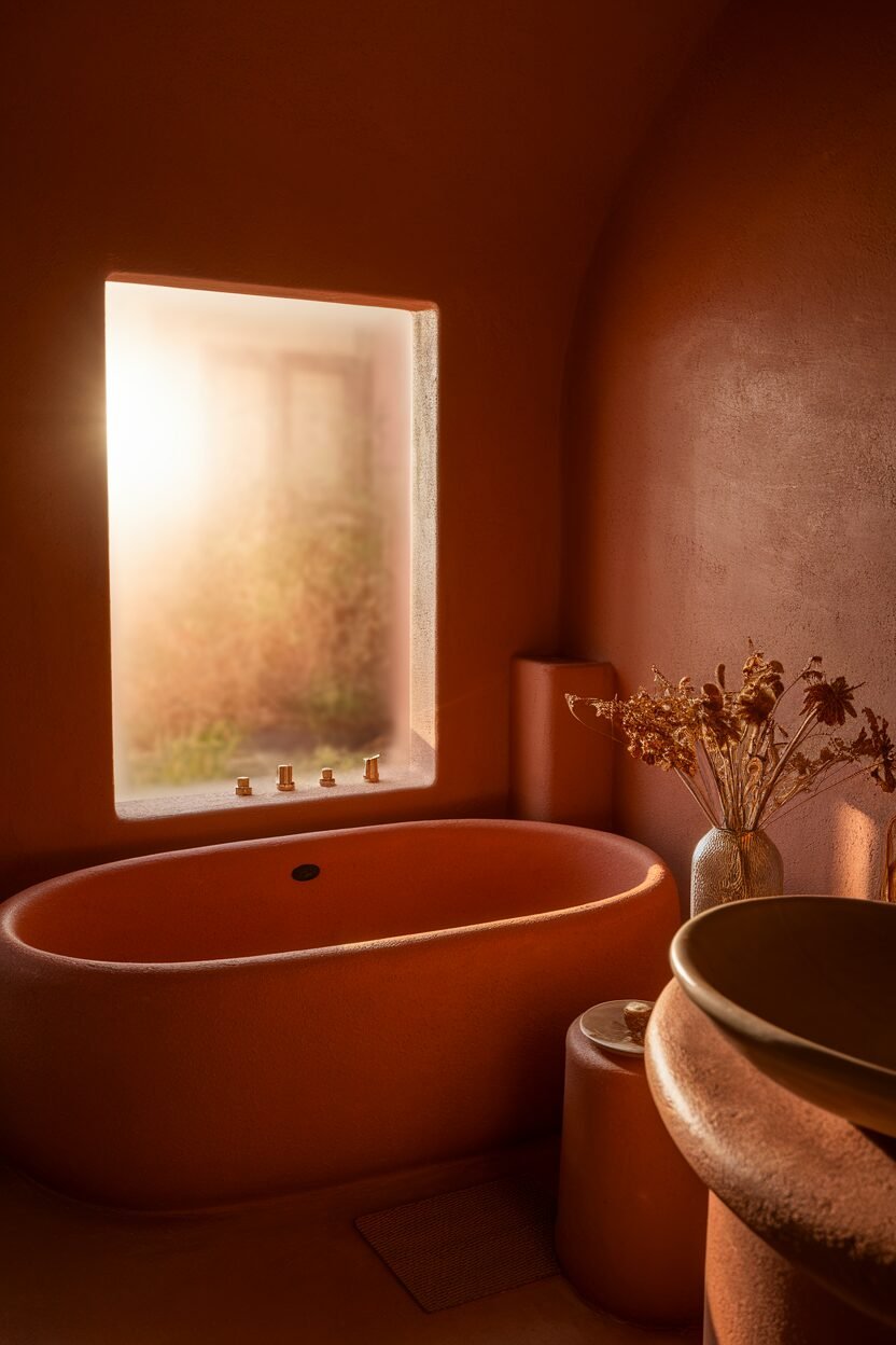Terracotta brings warmth and earthiness to your bathroom. It’s a color that’s both rustic and inviting.