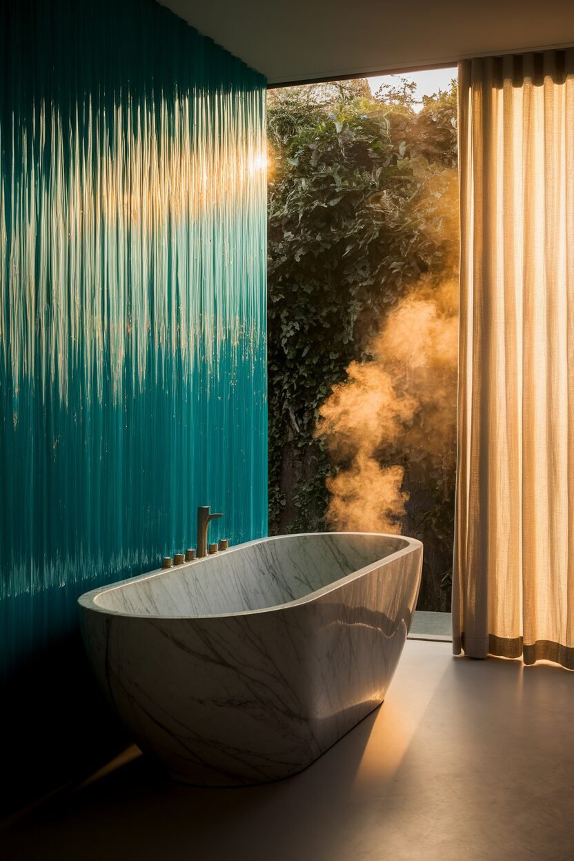 Consider sky blue walls or tiles for a light and airy feel. Add white accents for a crisp, clean look.