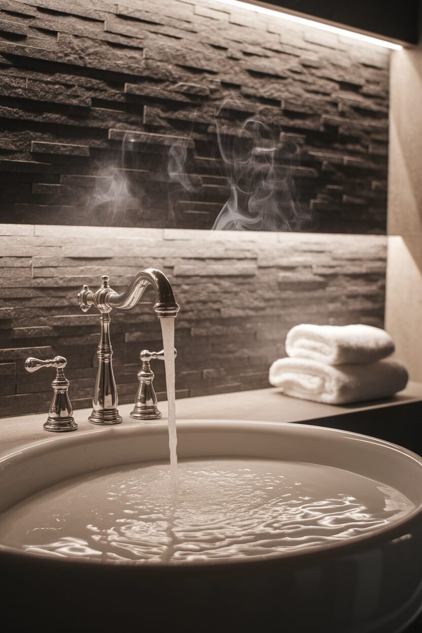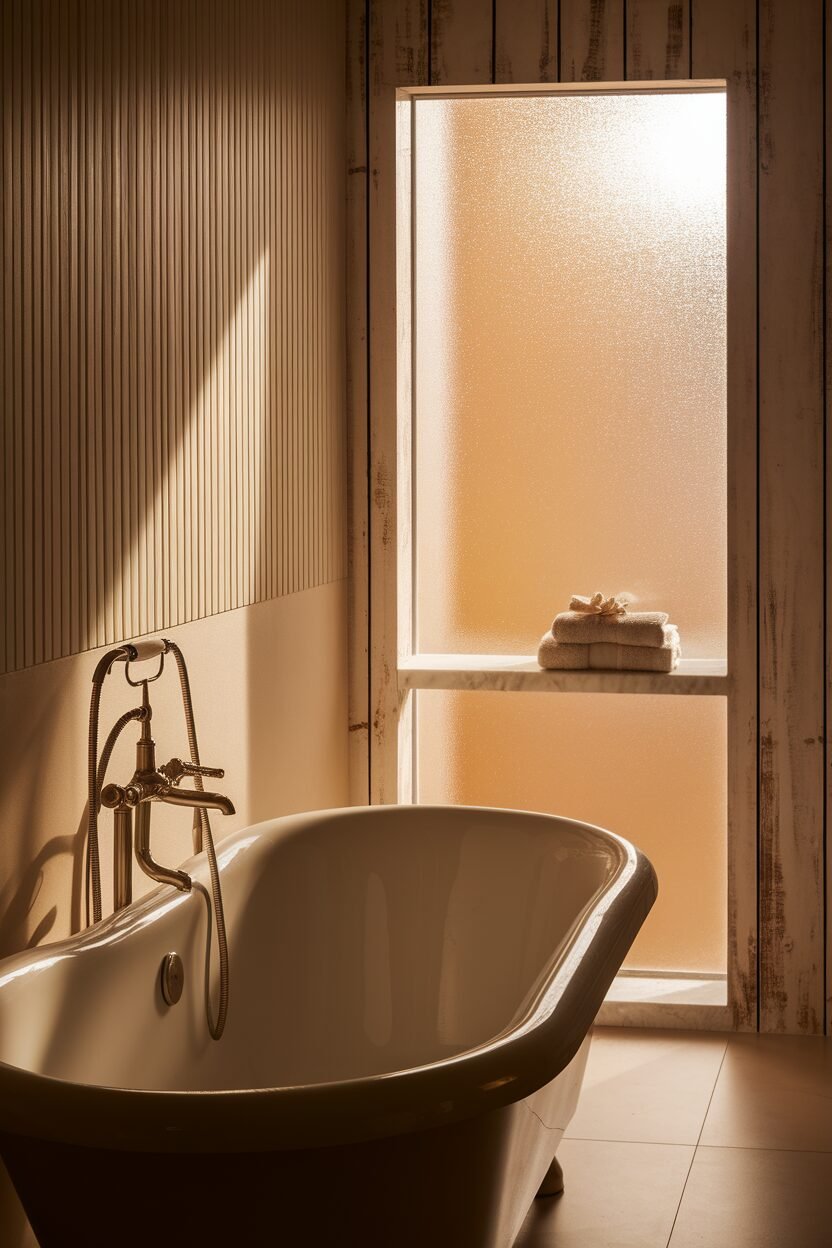 Use taupe walls or tiles for a soft, warm look. Add wooden elements for a cozy, rustic feel.