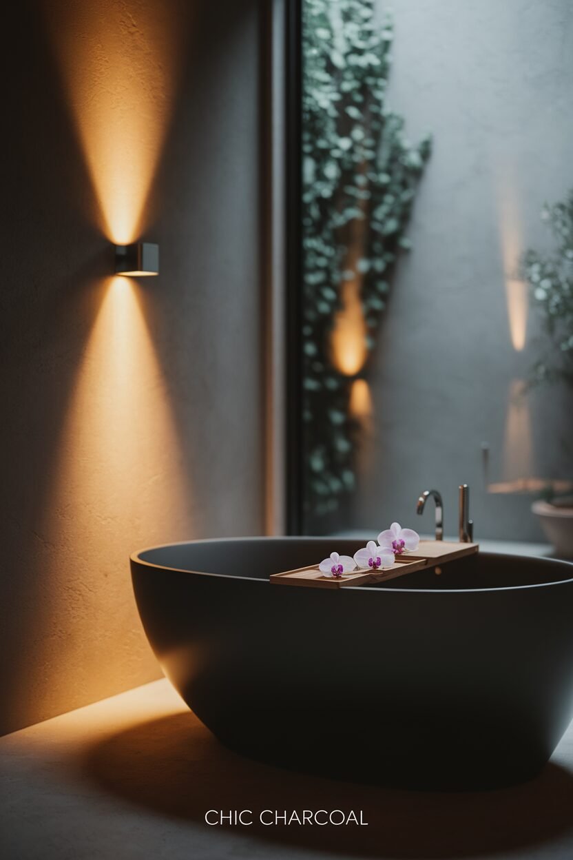 Use charcoal tiles or paint for a dramatic effect. Add light-colored accents to balance the darkness.