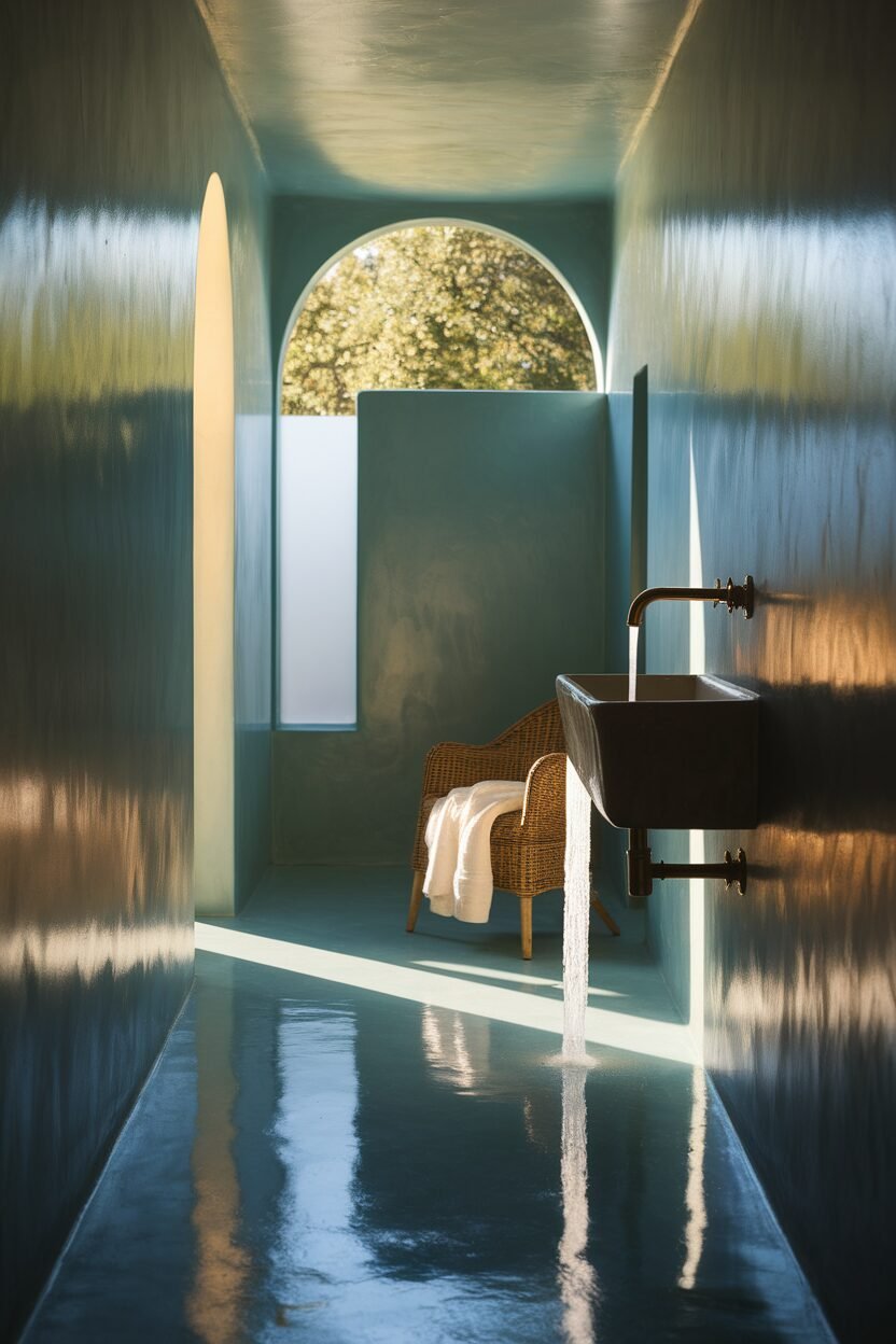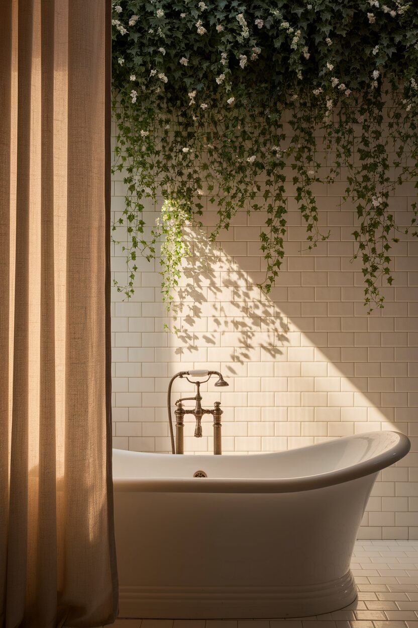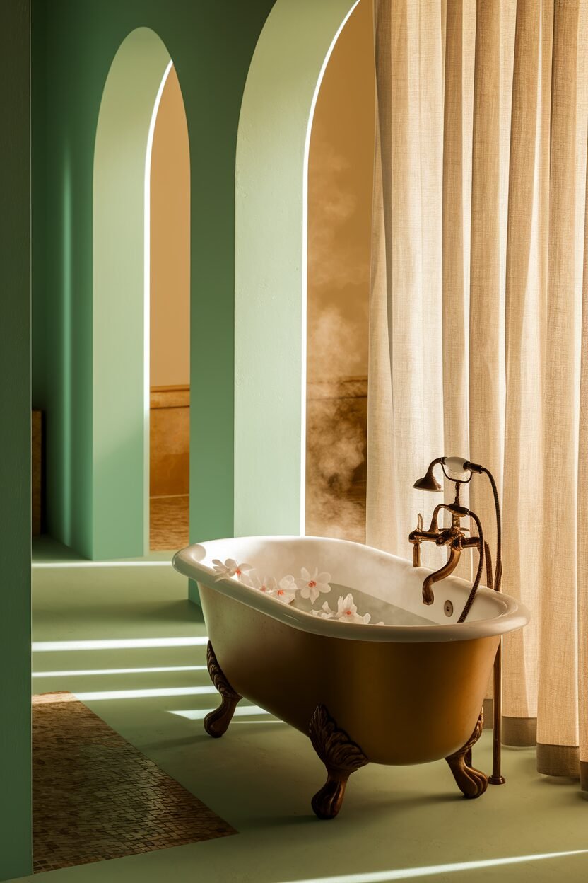 Consider mint green walls or a painted vanity. Add plants or wooden elements for a nature-inspired look.