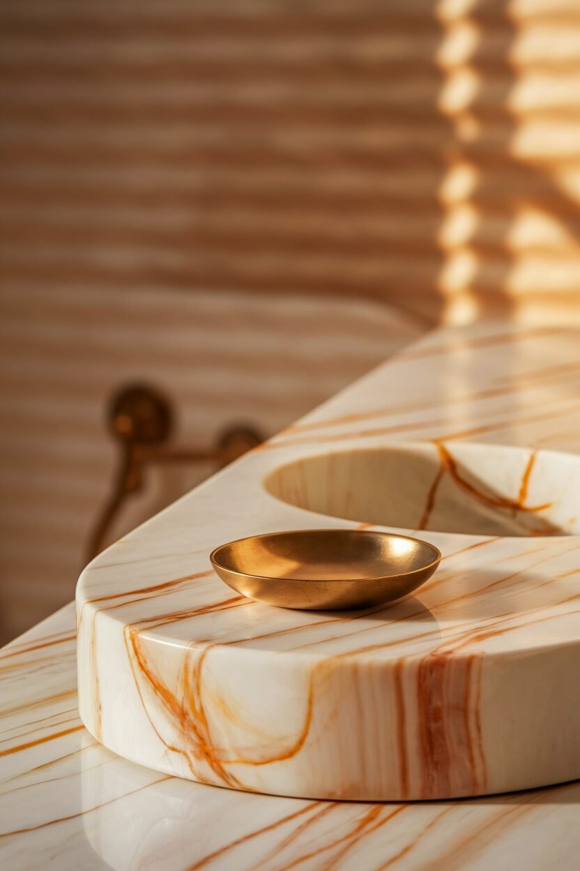 Accessorize with natural elements like wooden trays or plants to complement the stone’s earthy vibe. This creates a harmonious and serene atmosphere.