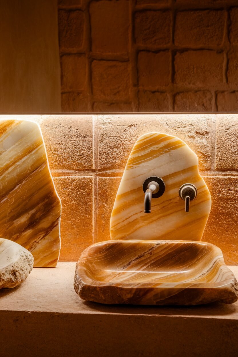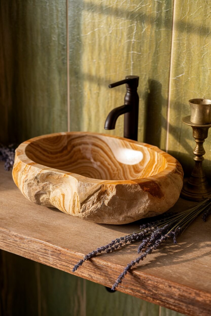 Using a vessel sink made from natural stone can be a stunning focal point on your counter. Each sink is unique, bringing its own character and beauty to the space.