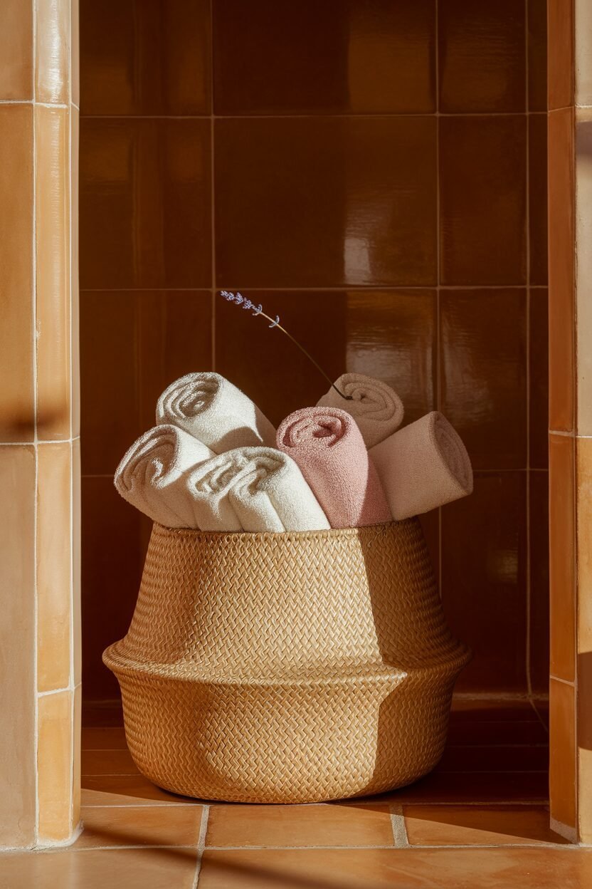 Layering towels on hooks or shelves adds texture and visual interest. You might even consider hanging a few decorative towels as art!
