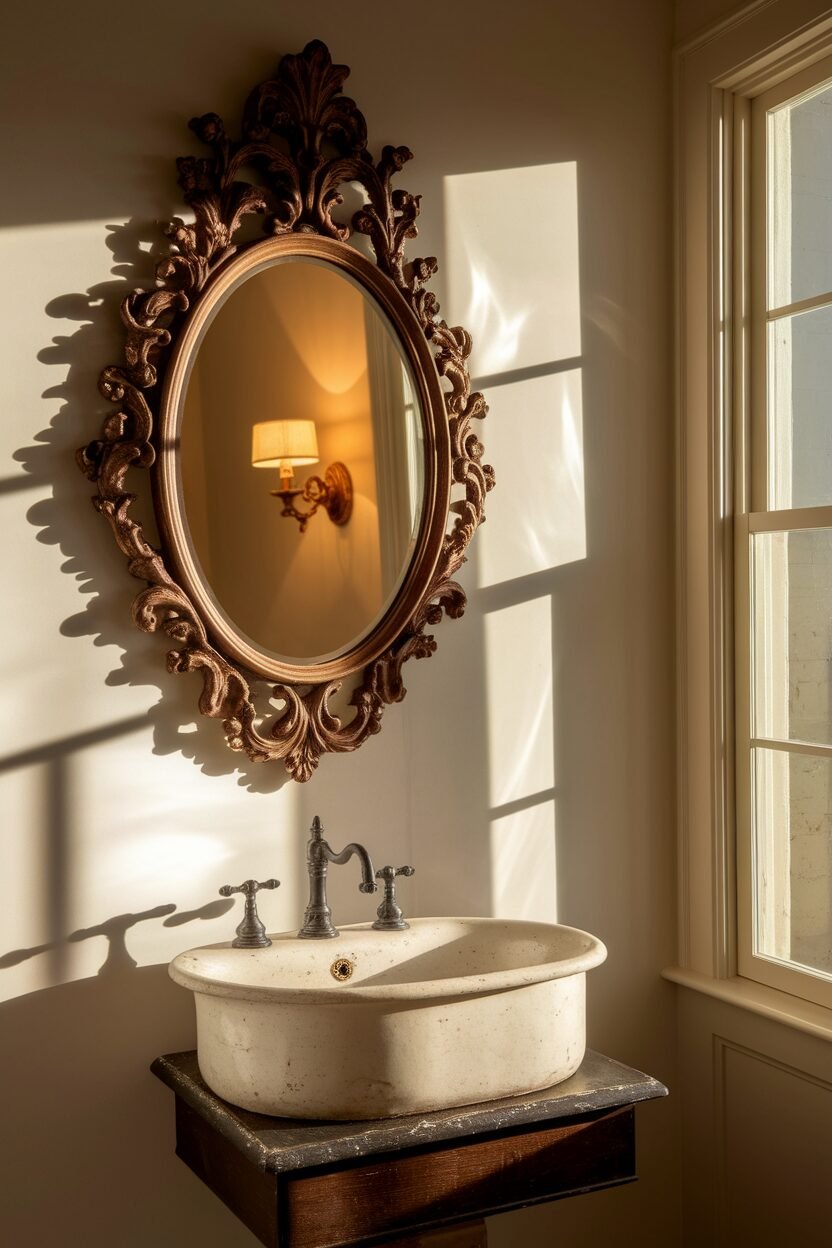 Choose a unique shape or a vintage-style frame to make your bathroom feel special. Mirrors can reflect light and make your space feel larger, too!
