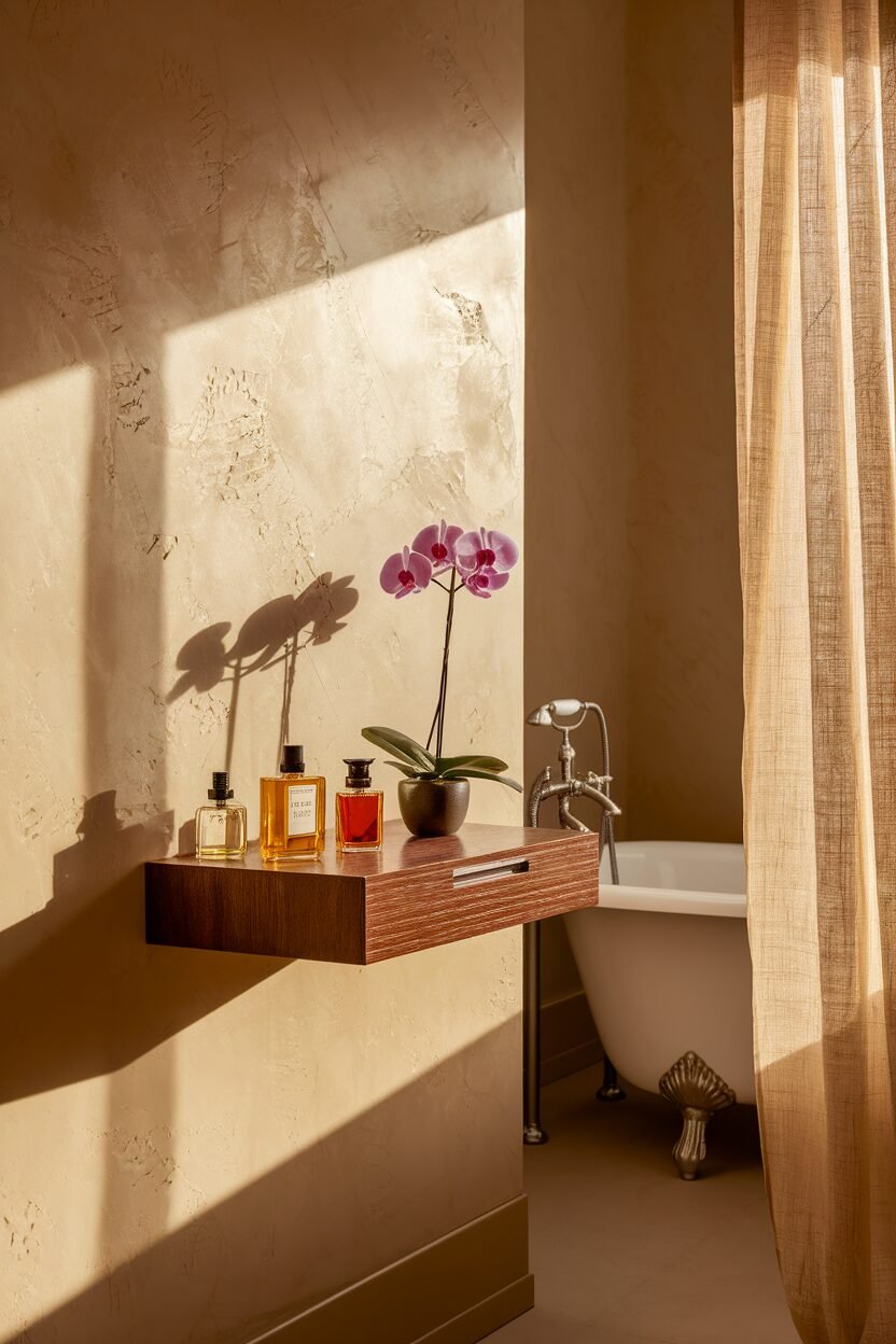Consider adding a chic bath tray for candles, books, or even a glass of wine to enhance your relaxation time. Position it near a window for a beautiful view while you soak!