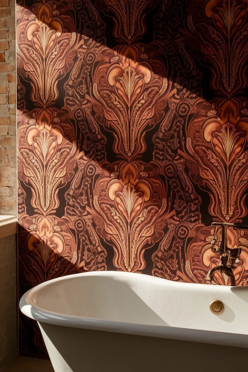 Opting for water-resistant wallpaper is a smart choice, ensuring it lasts in a humid environment. This idea allows you to create a personal sanctuary that feels inviting and chic.