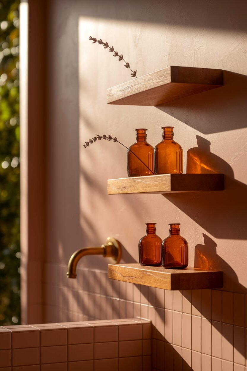 Floating shelves are a fantastic way to add storage while keeping things stylish. They create an airy feel that can make even the smallest bathrooms look spacious.