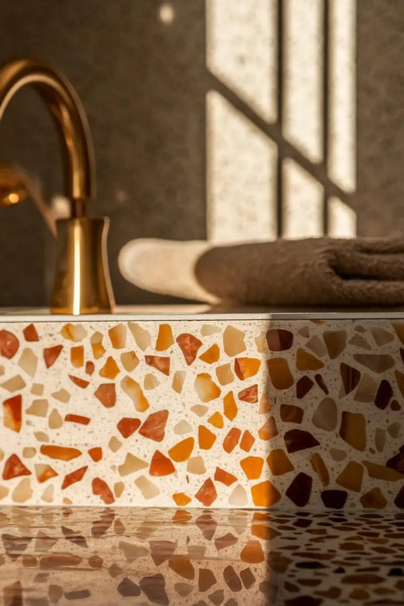 Consider using terrazzo tiles on the floor or as an accent wall. They’ll definitely catch the eye and make a statement!
