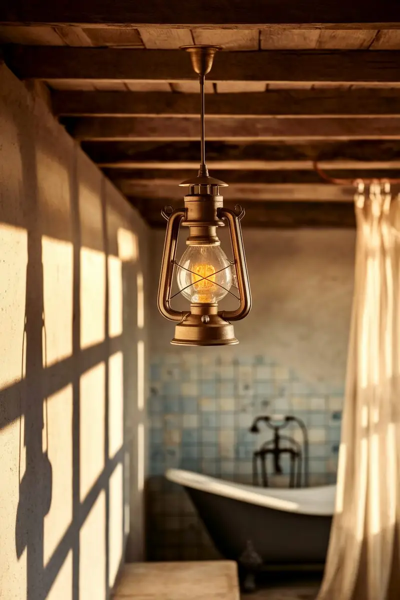 A rustic barn pendant light brings a warm, homey vibe to your bathroom. It’s like having a piece of the countryside right in your home, reminding you to relax and enjoy the moment.
