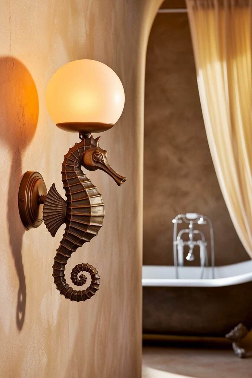 Nautical-inspired lighting can bring a refreshing beach vibe to your bathroom. Think lanterns, rope details, and marine colors that evoke seaside relaxation.