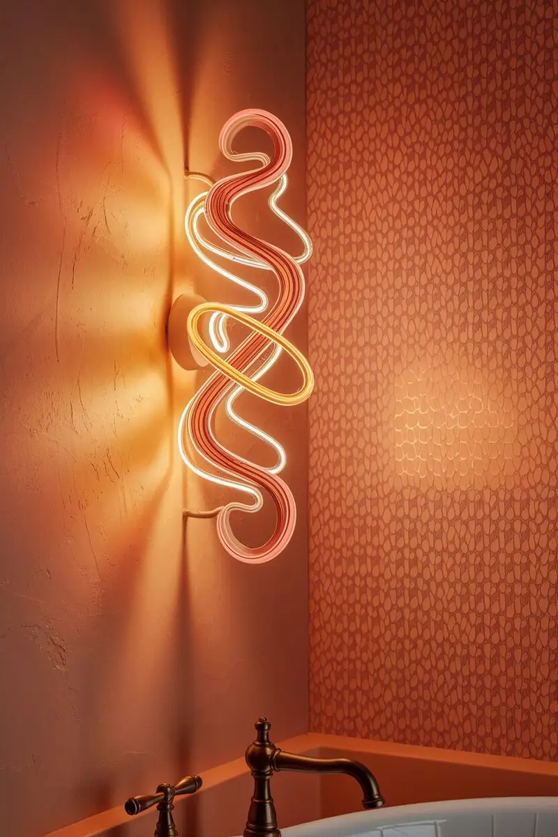 If you want to add a fun twist to your bathroom, consider retro neon lights! These colorful lights can bring a playful vibe to your space.