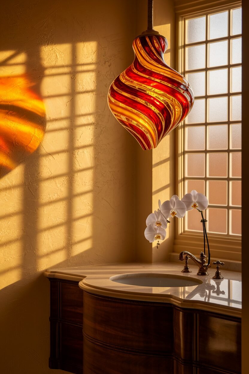 Add a pop of color to your bathroom with vibrant pendant lights! These fixtures can brighten your space and reflect your personality.