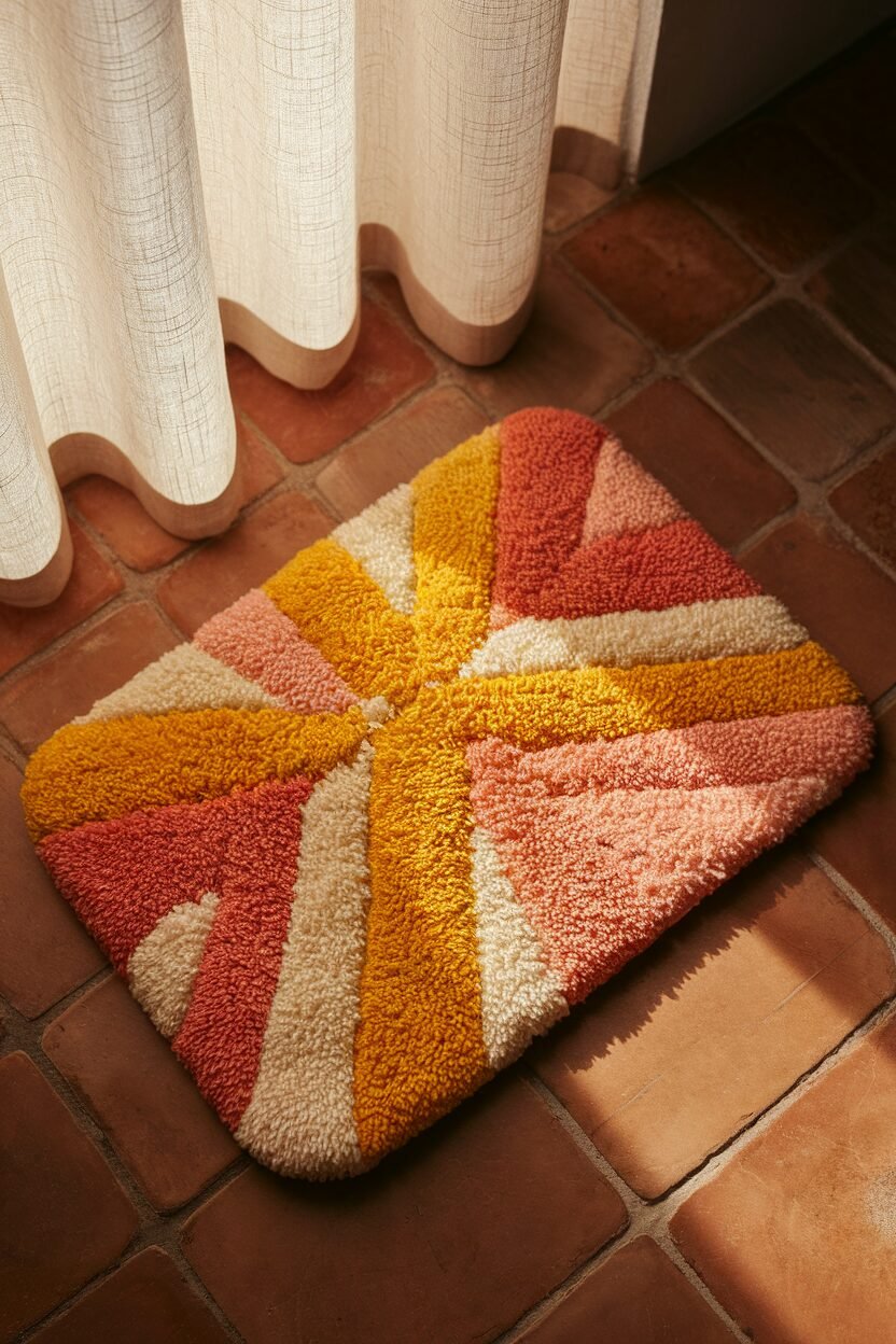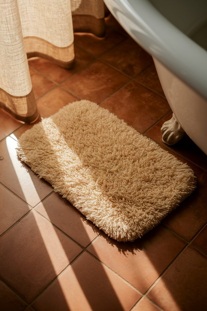 You can find colorful cotton mats starting at around $20. It’s an affordable way to bring joy and vibrancy into your bathroom!
