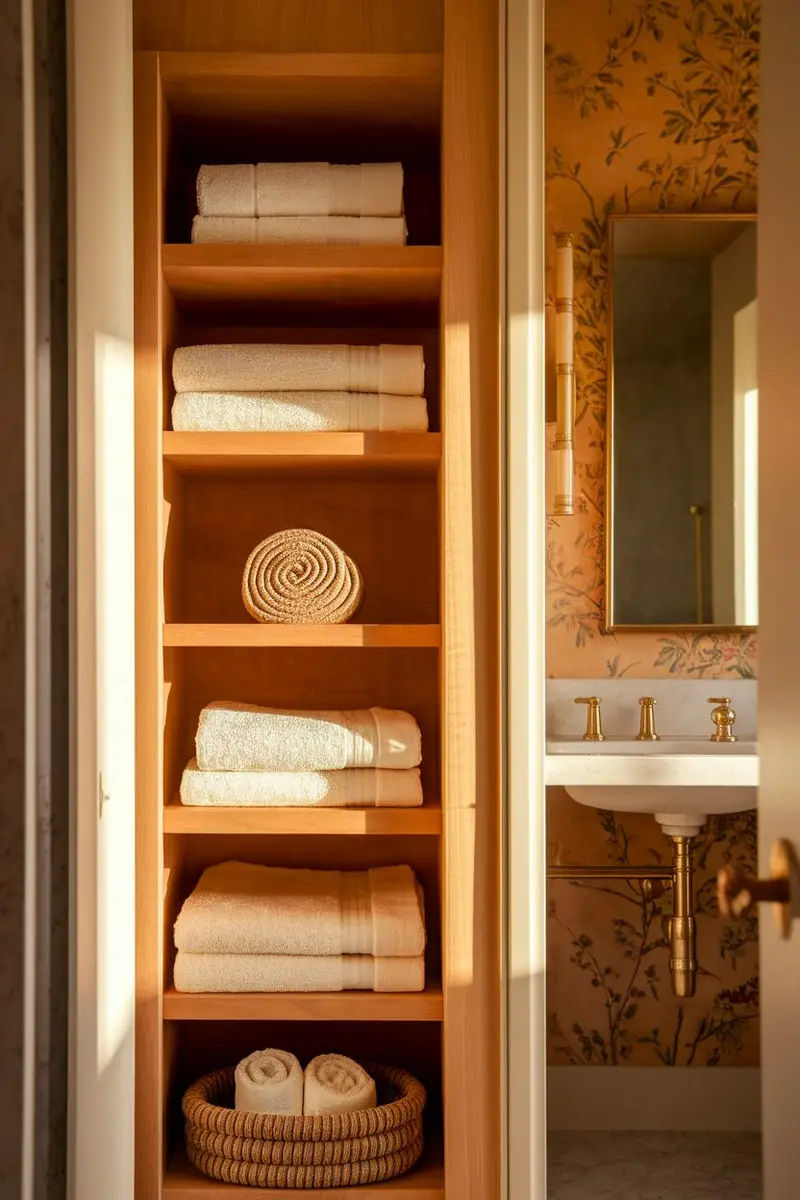 Having a small closet or nook for towels and other supplies is a game changer! A depth of 24 inches gives you enough space to keep everything organized and tidy.
