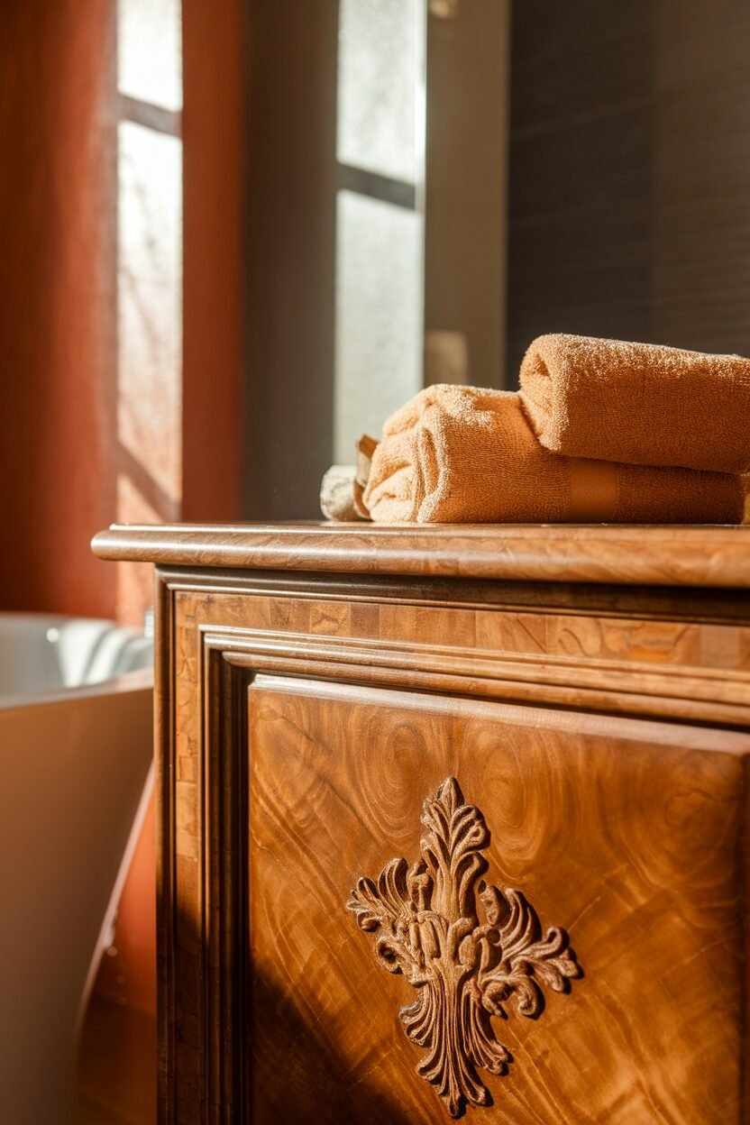 Imagine a beautiful cabinet that looks like it came straight from Grandma’s house! Vintage cabinets are unique, often made of wood with intricate details that add character to your bathroom.
