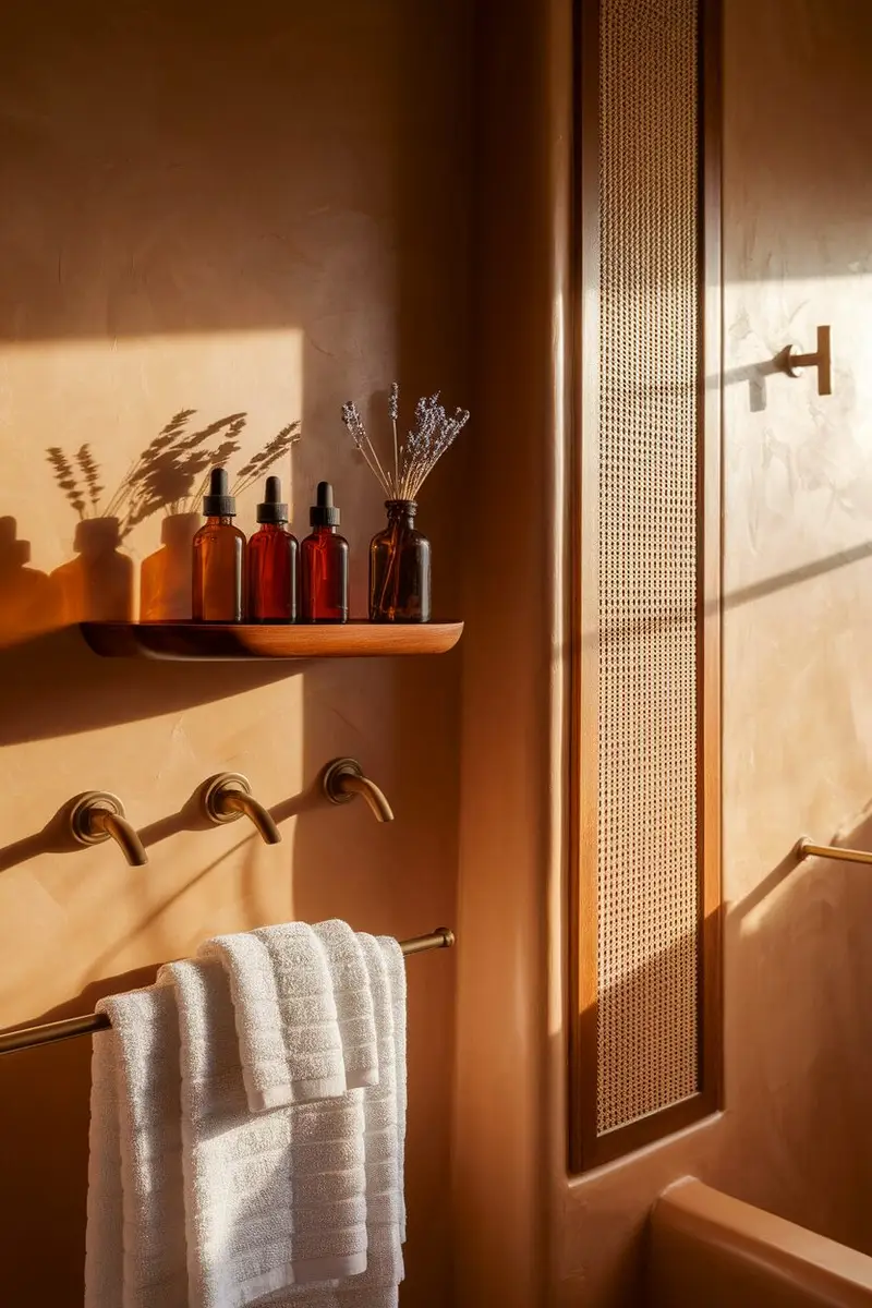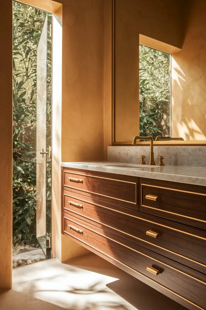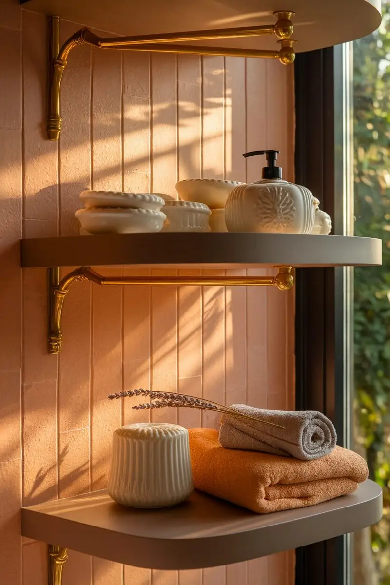 Open shelving can create a modern, airy feel in your bathroom. It’s perfect for displaying pretty toiletries, plants, or decorative items.