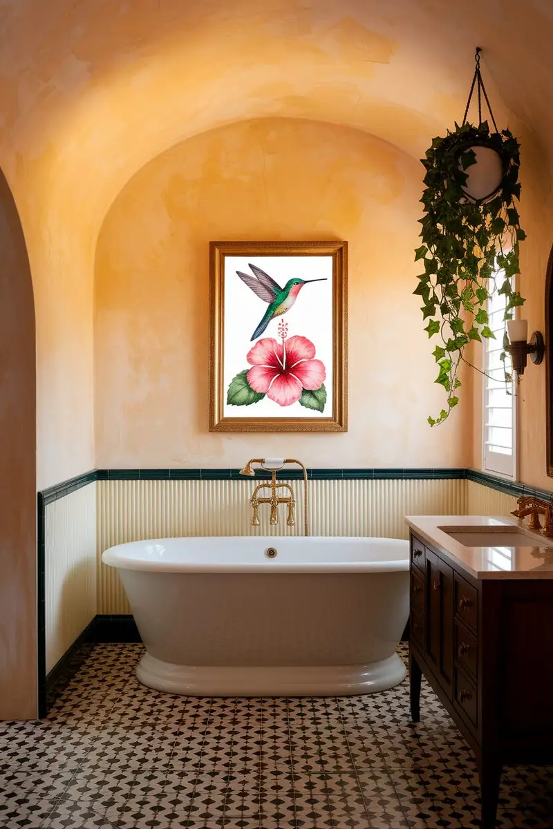 Think about creating a gallery wall with different sizes and styles of frames. This can make an exciting focal point in your bathroom.