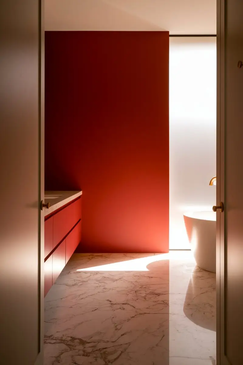 Don’t shy away from bold paint colors in your bathroom! A bright hue can instantly energize the space and make it feel fresh and unique.