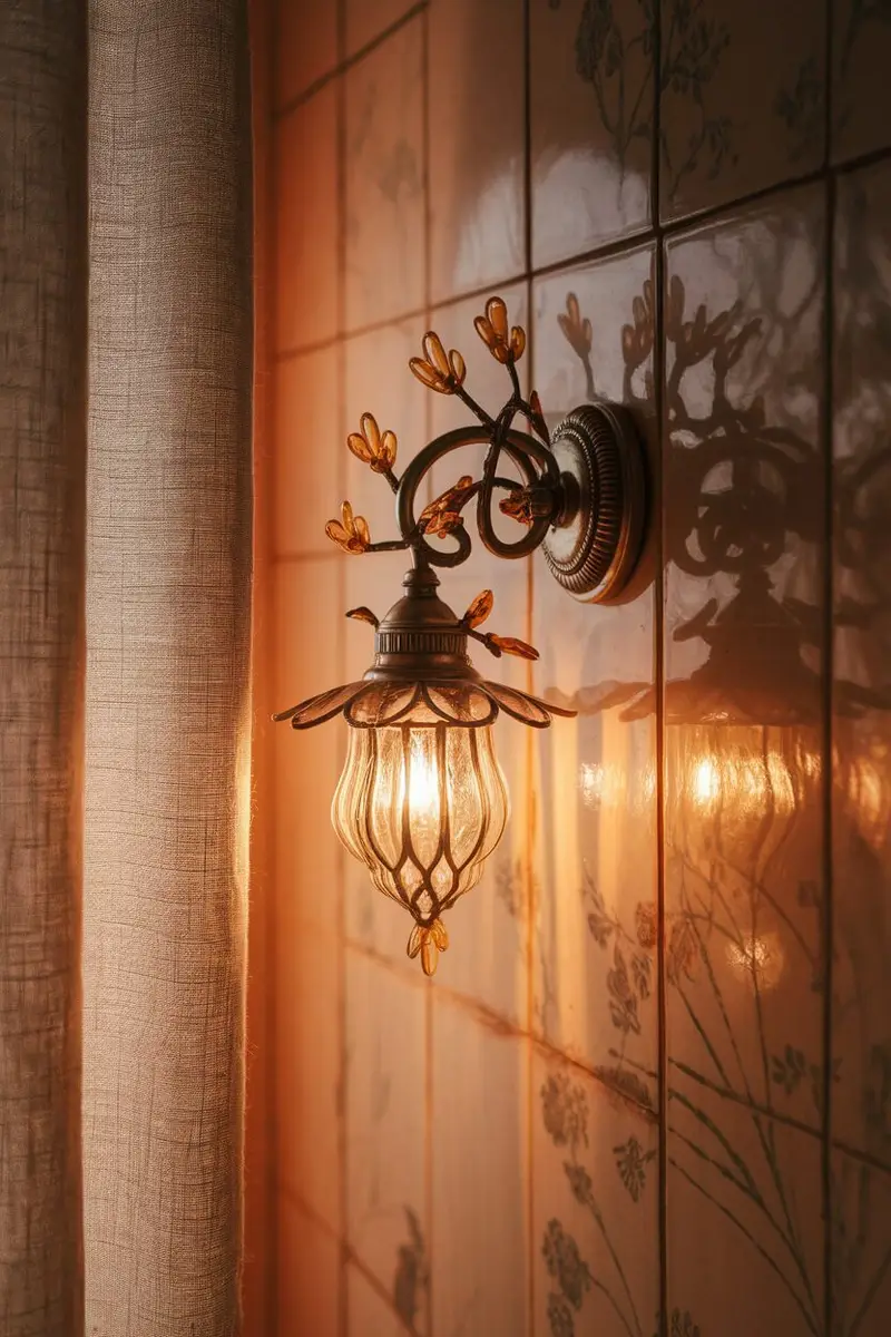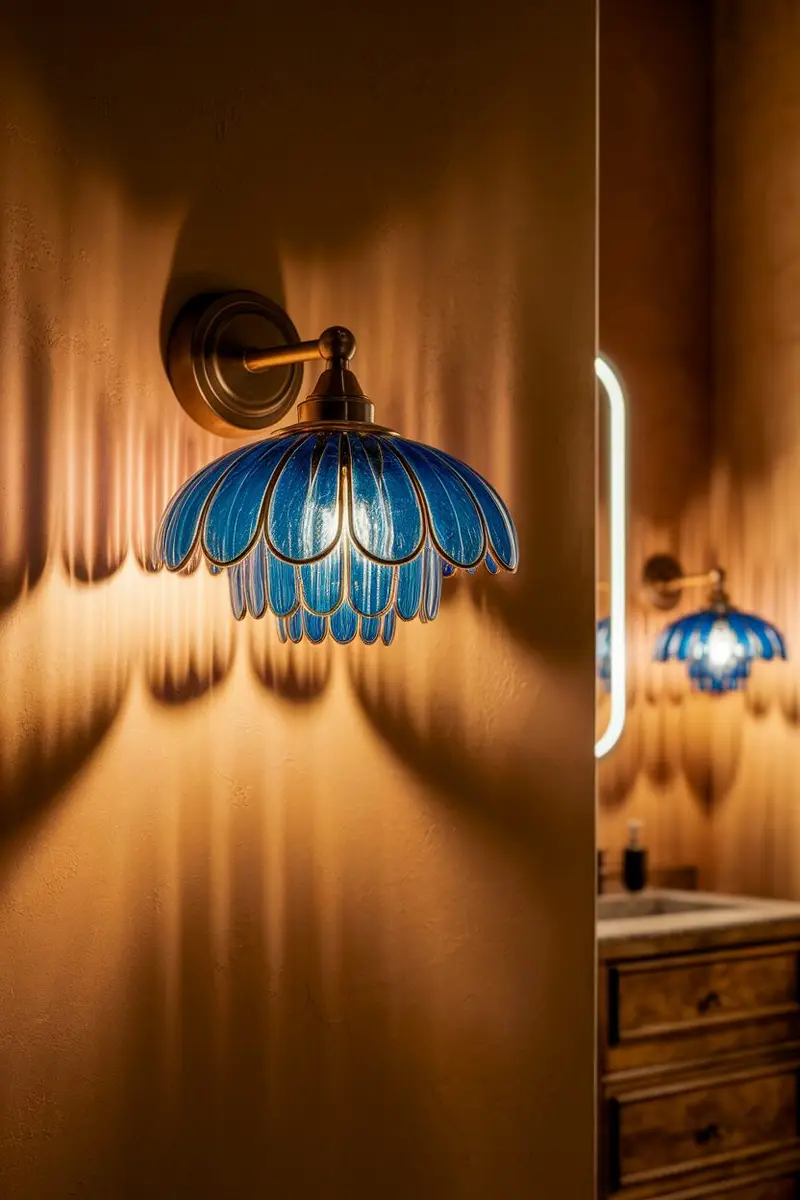 Bring some creativity into your bathroom with artistic sconces! These fixtures can feature bold colors or unique designs that serve as mini art pieces.