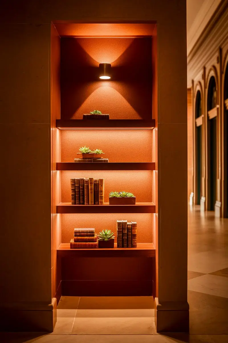 Using baskets or decorative boxes on the shelves can add a touch of style while hiding away small items. This keeps everything looking neat and tidy, even in a small space!