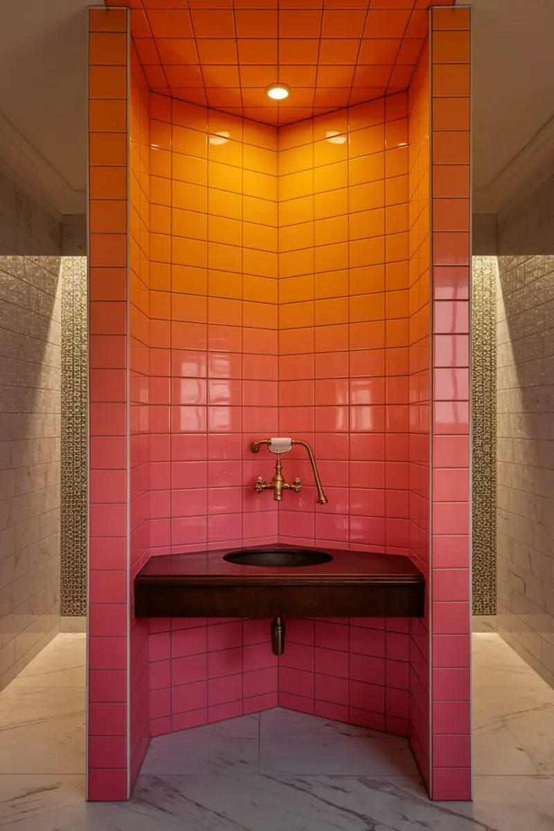 Why not make a statement with bright, bold colors in your bathroom stall? Swapping out the usual neutrals for vibrant hues can really energize the space.