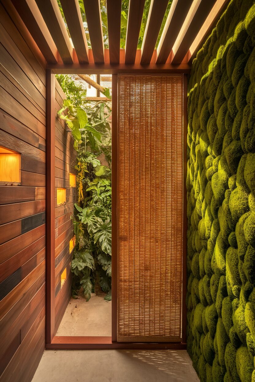 Imagine stepping into a bathroom stall that feels like a serene forest. Using wood paneling, greenery, and earthy tones can bring nature right inside your home.