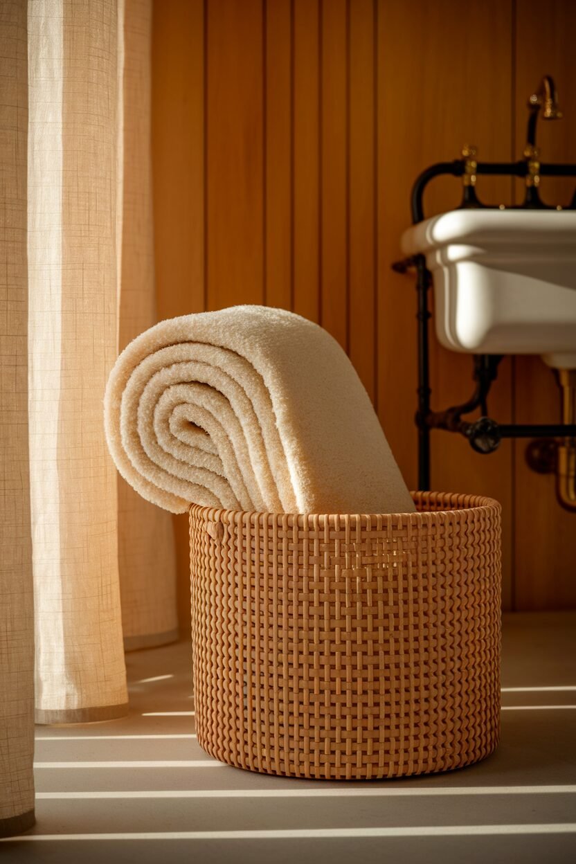 Use them to store towels, toiletries, or even kids’ bath toys. They add a cozy, boho vibe that makes your bathroom feel warm and inviting.