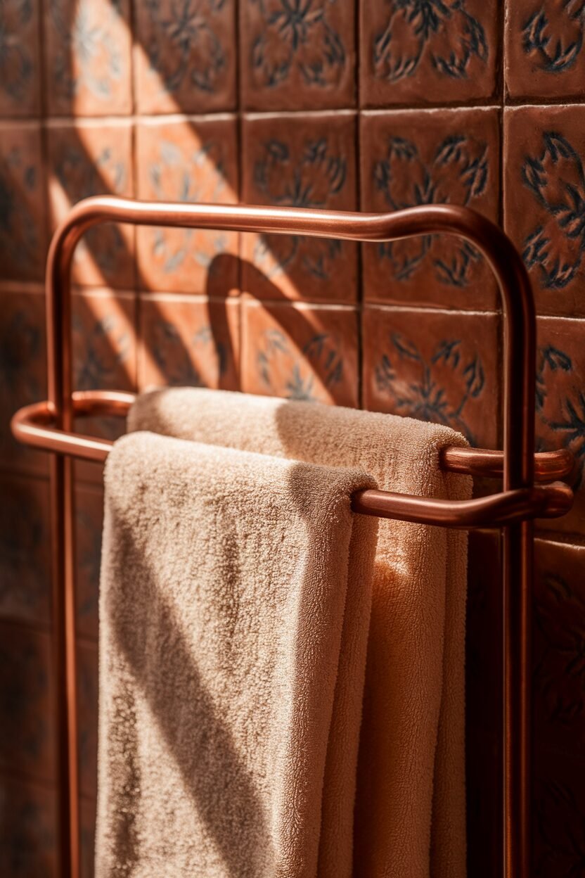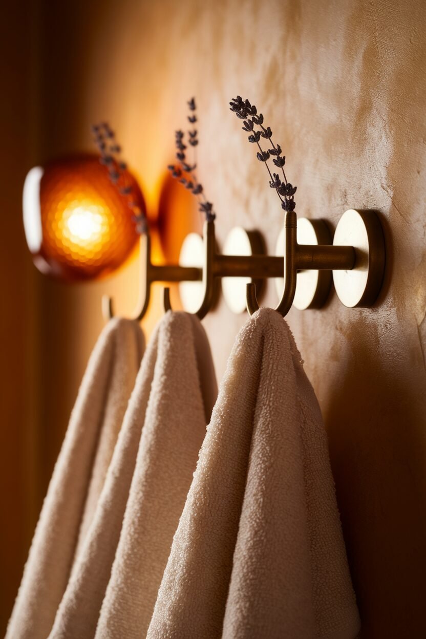 Consider a ladder-style rack or a decorative wall-mounted option that doubles as art. This way, you can hang your towels and showcase your style at the same time.