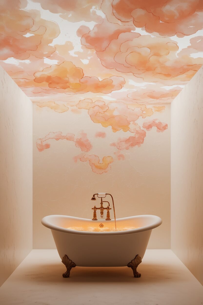 Imagine taking a shower under a sky full of soft, fluffy clouds! Whimsical cloud wallpaper can make your bathroom feel dreamy and serene.