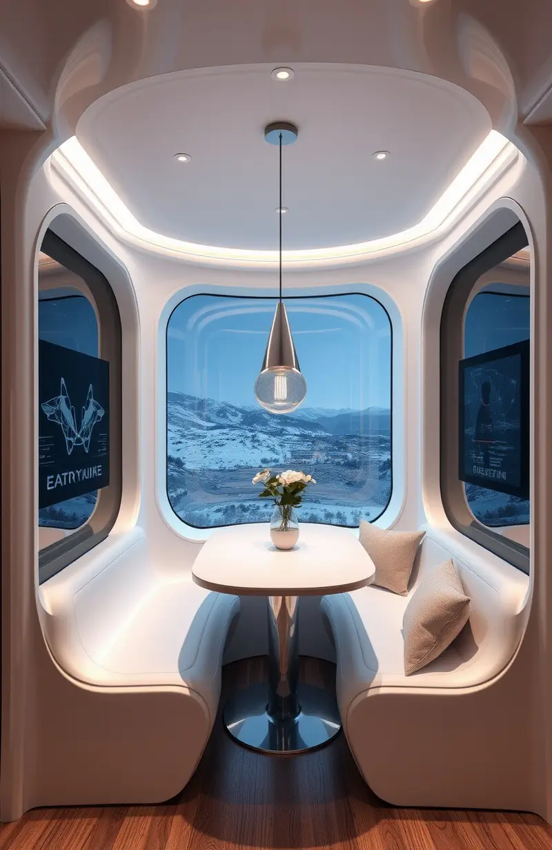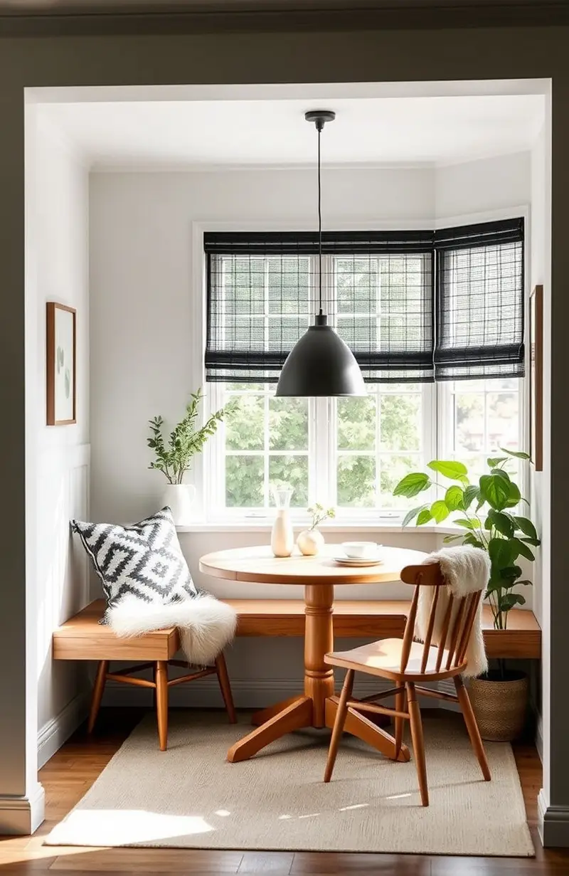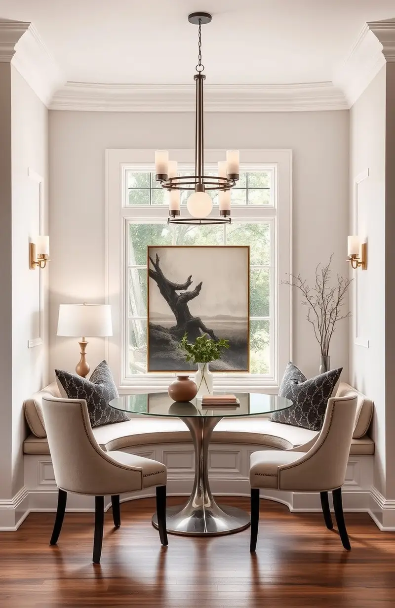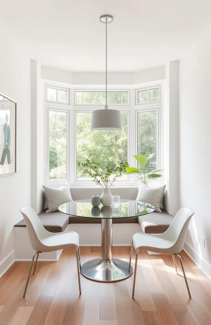 Embrace simplicity with a modern minimalist dining nook. Use clean lines, neutral colors, and sleek furniture.