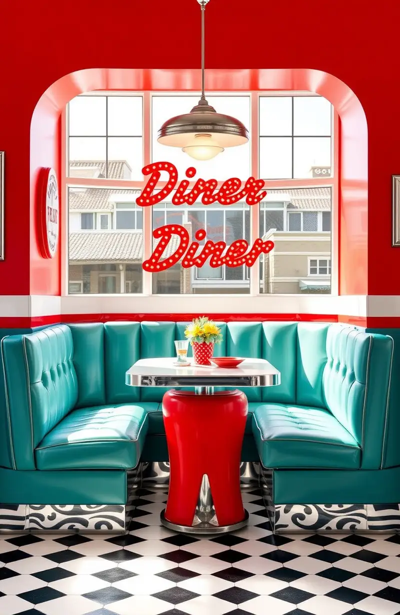 Time travel to the 1950s with a retro diner-inspired nook. Use bold colors, chrome accents, and vintage signage.