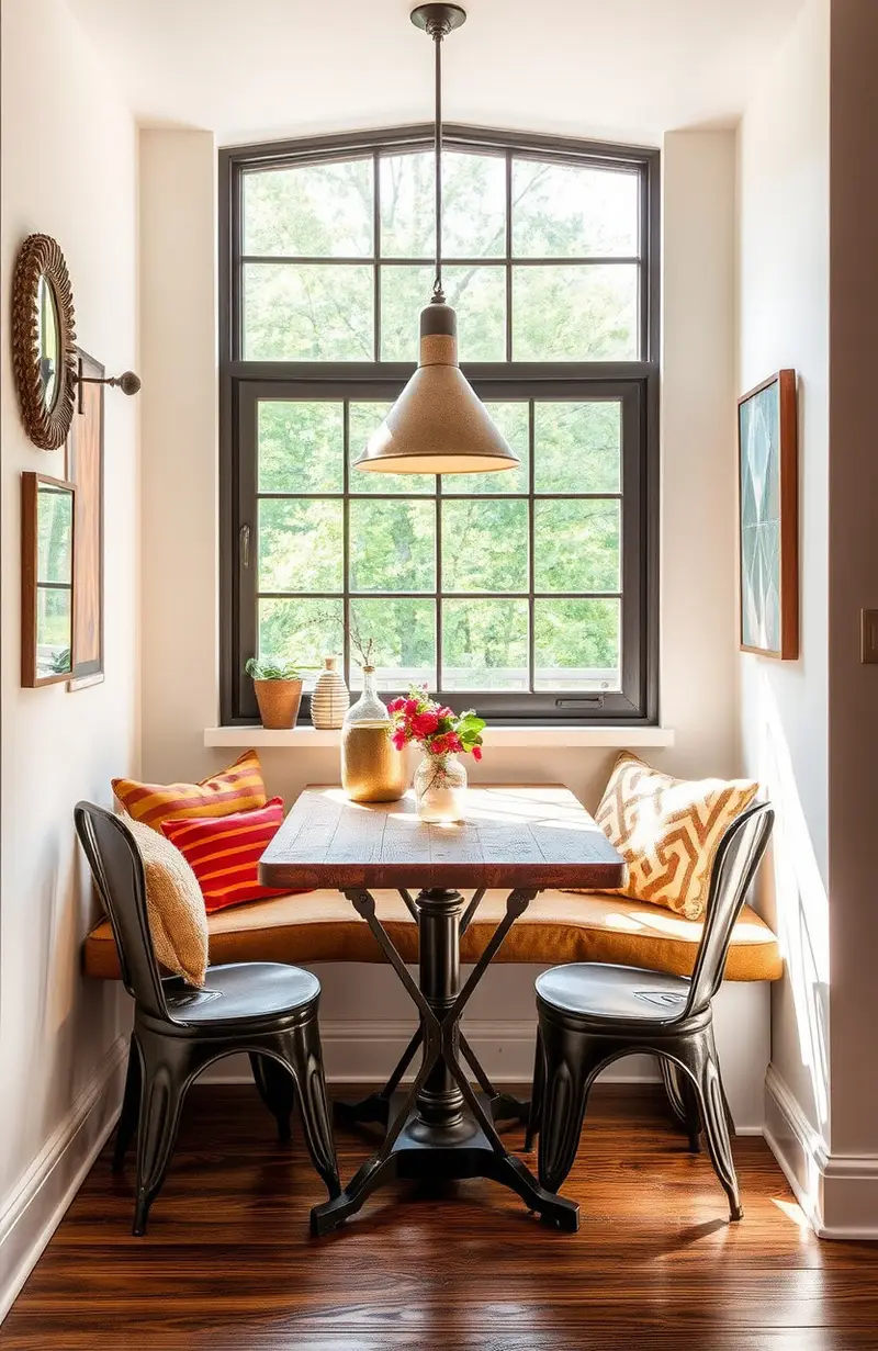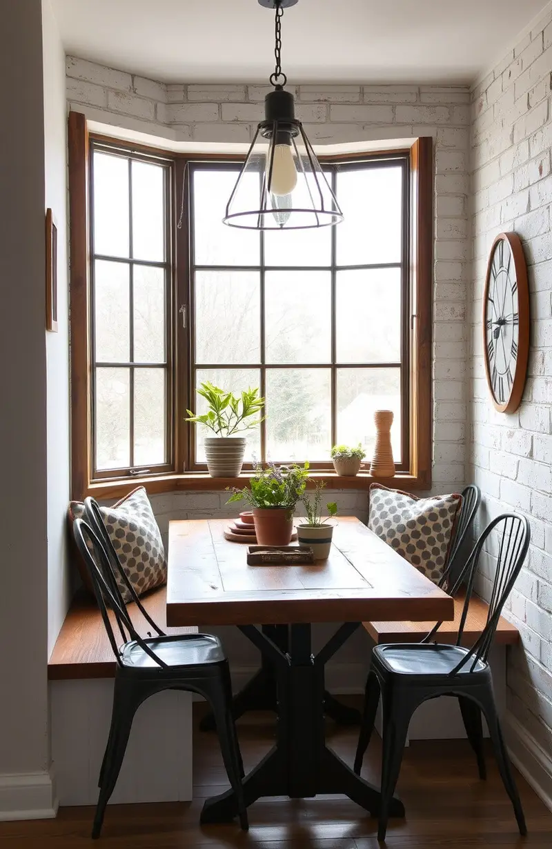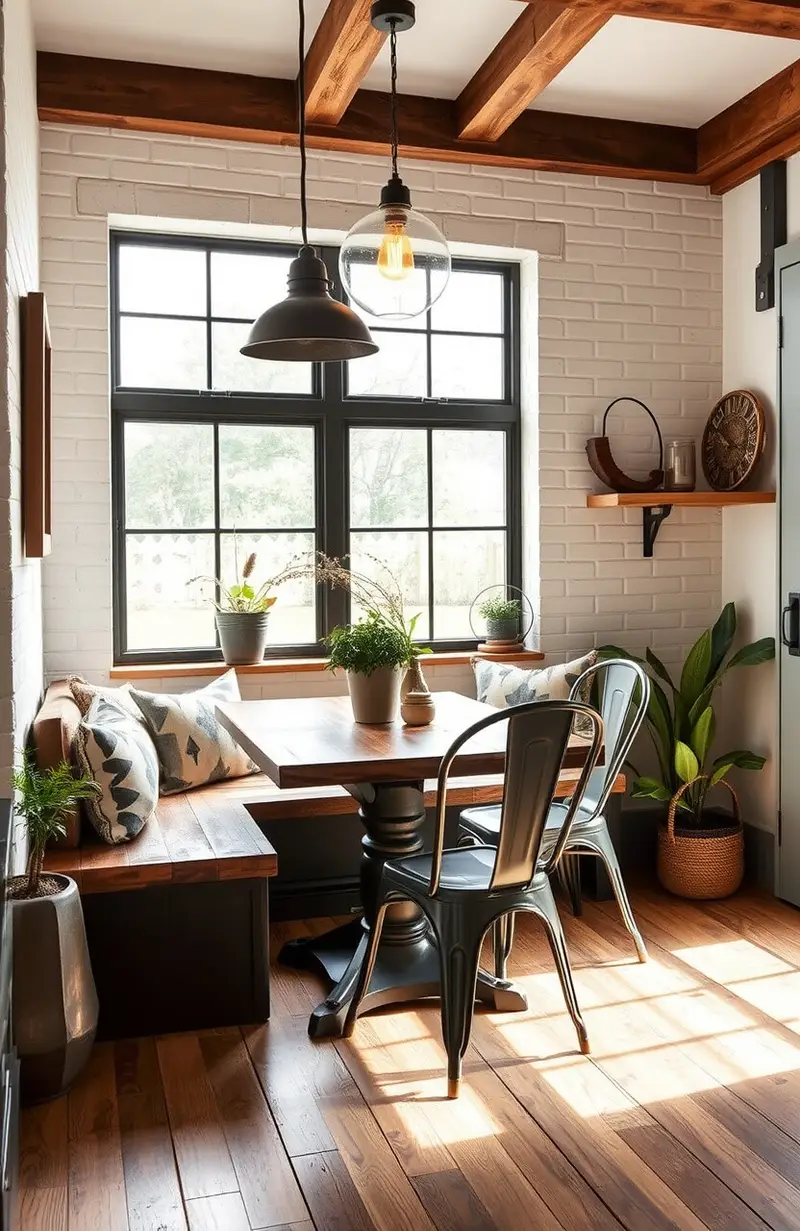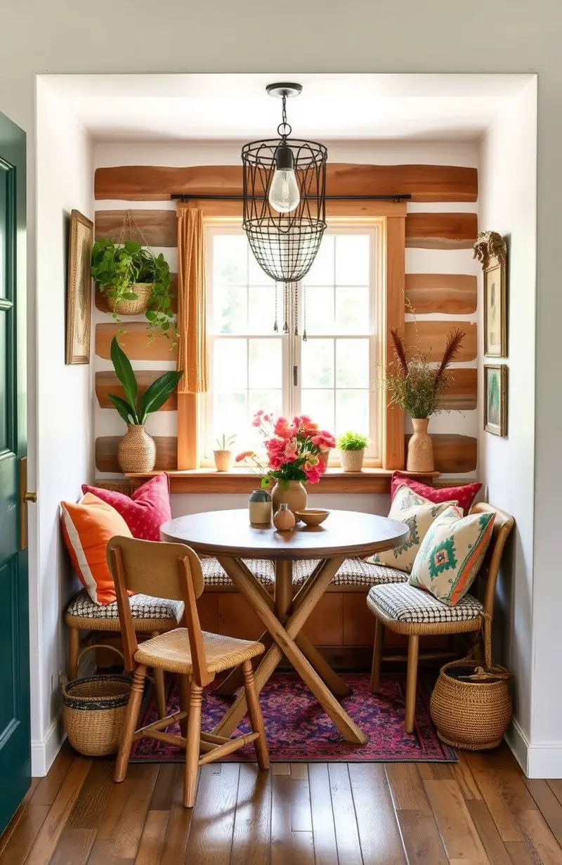 This style makes the dining nook feel like a countryside retreat. It’s unique with its earthy tones and natural materials.